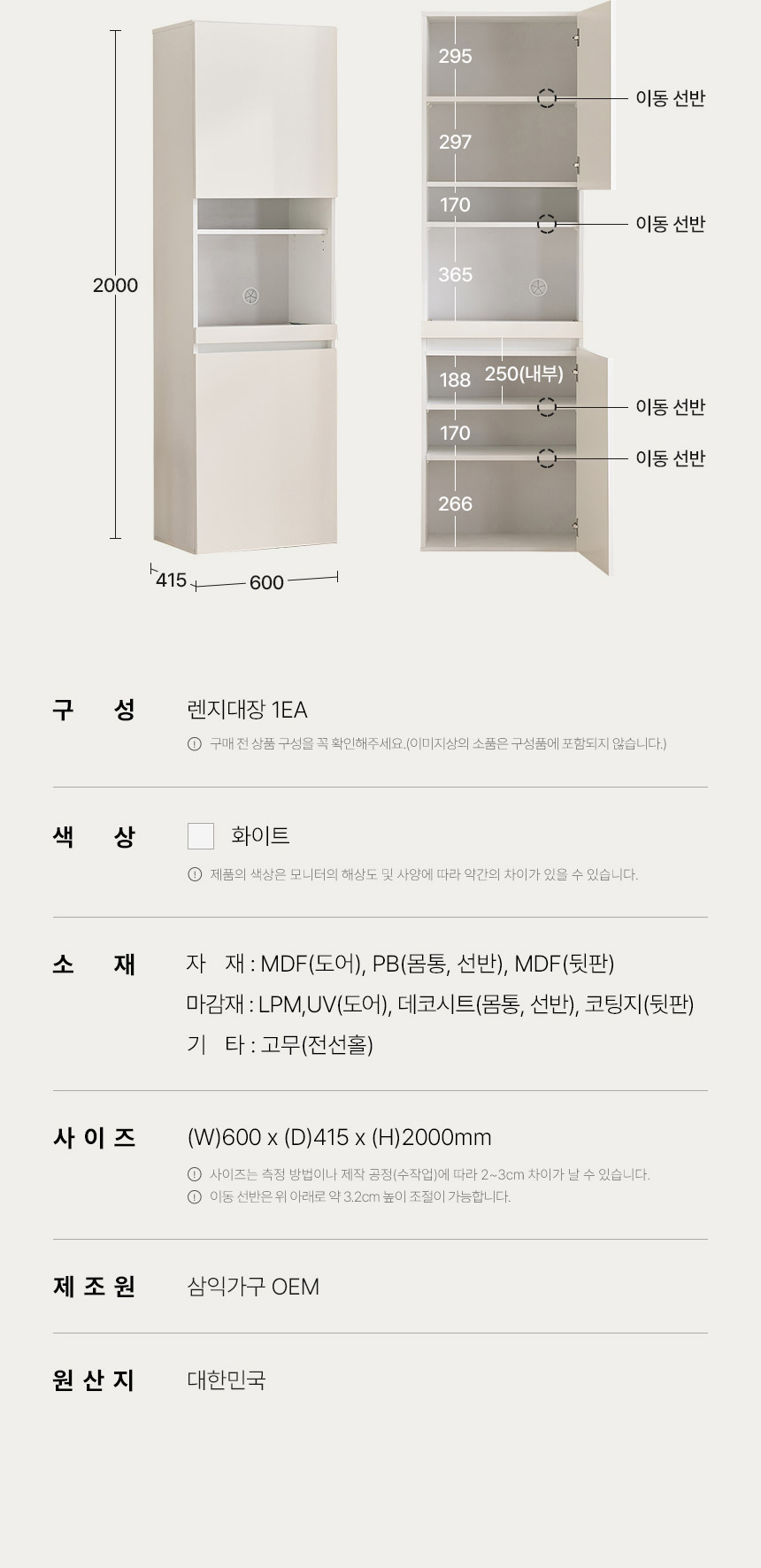 삼익가구 더캐빈 주방 수납 시리즈/선반장/렌지대/멀티장/수납장
