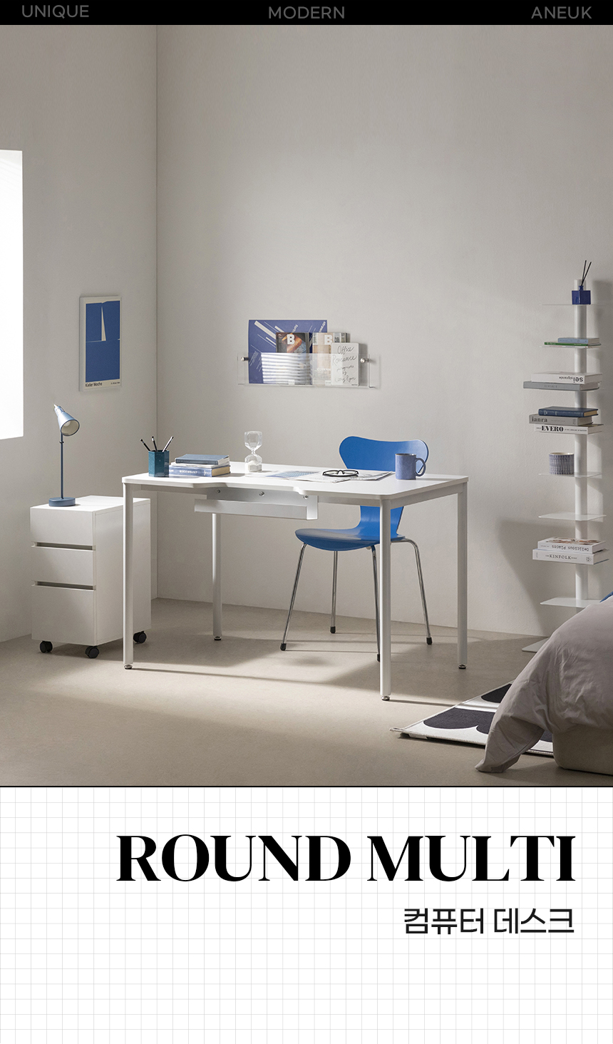 아늑 라운드 멀티 E0 컴퓨터 데스크 1200 x 700 화이트 책상