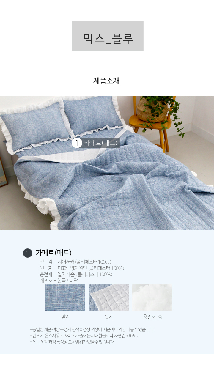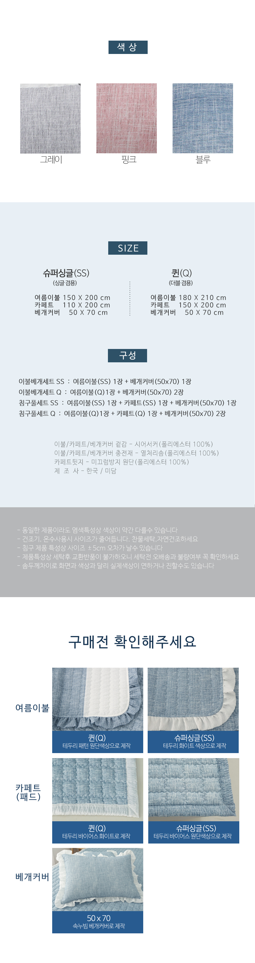 믹스 시원한 시어서커 여름 차렵 이불세트 침구 풀세트 SS/Q 3color