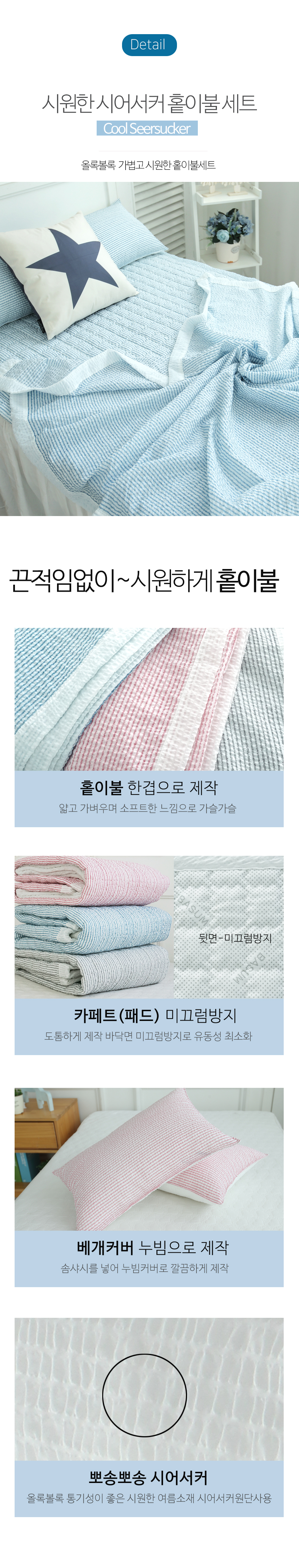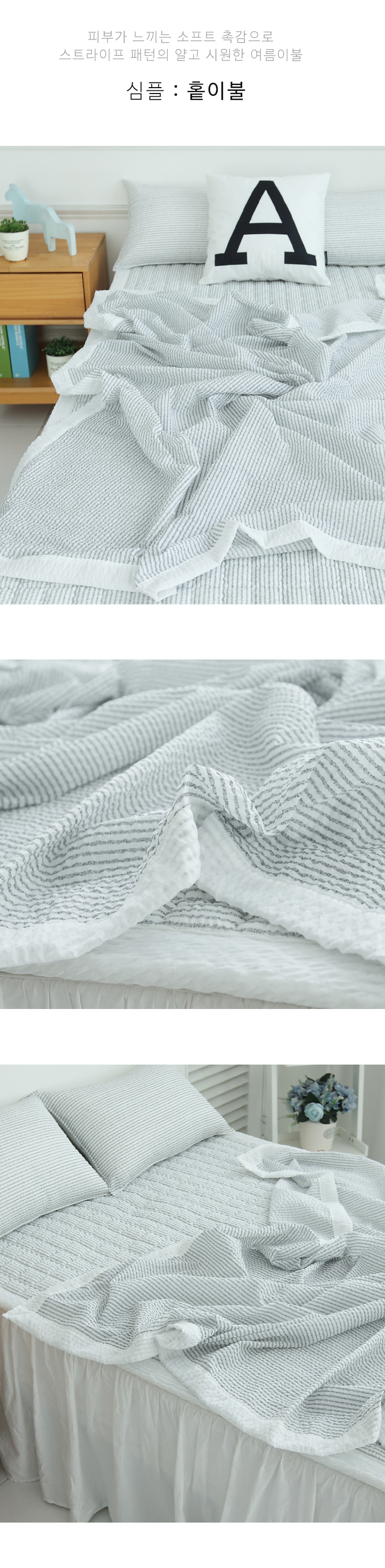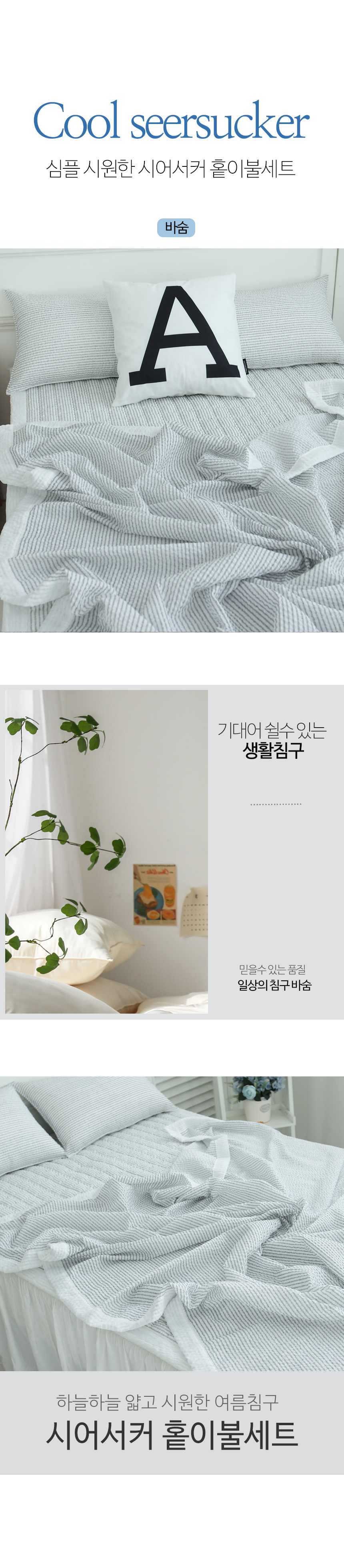 심플 시원한 시어서커 여름 홑이불세트 침구 풀세트 SS/Q 3color