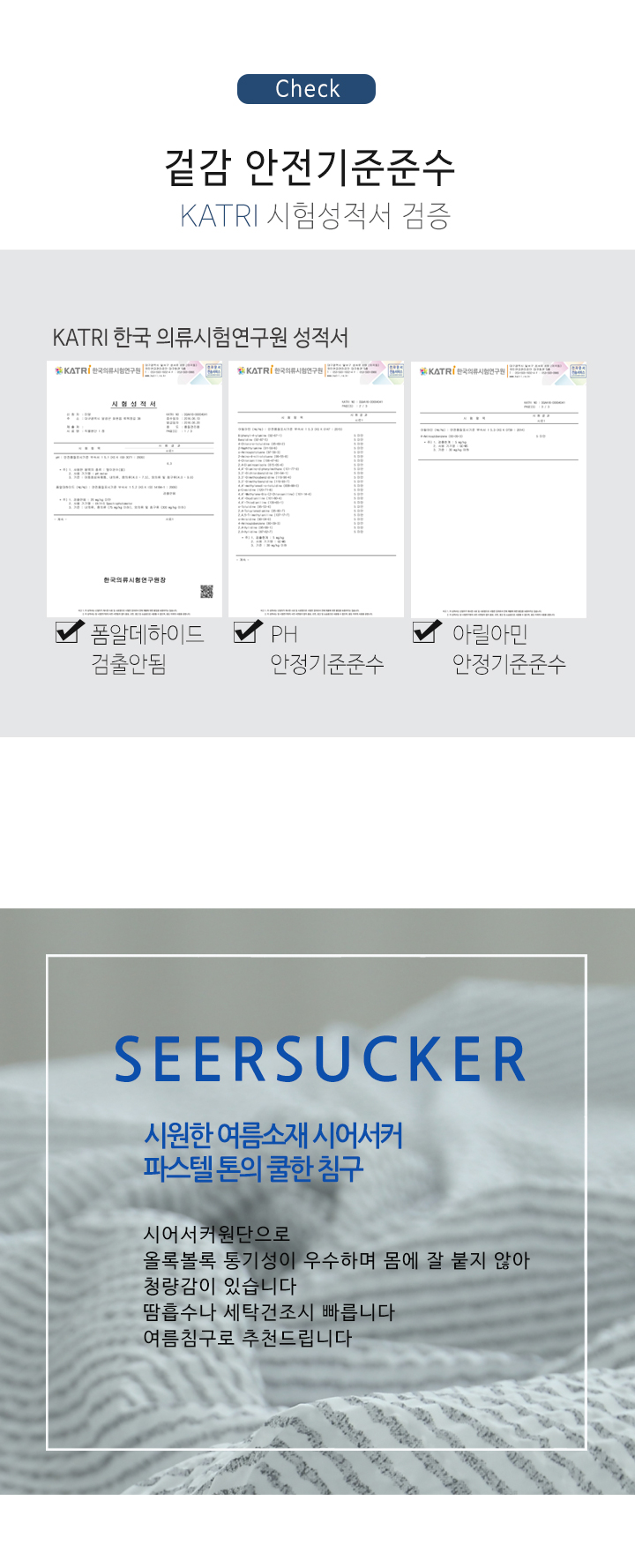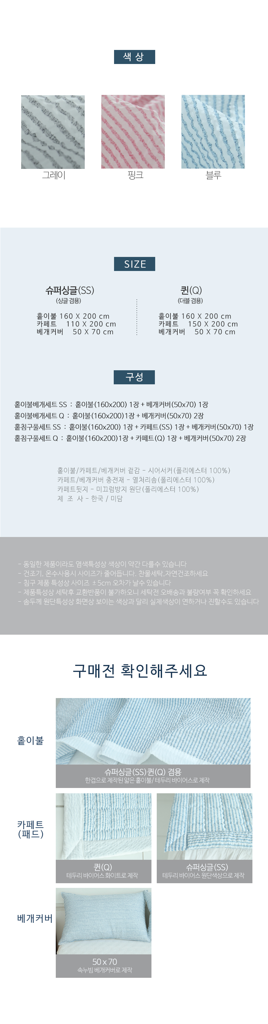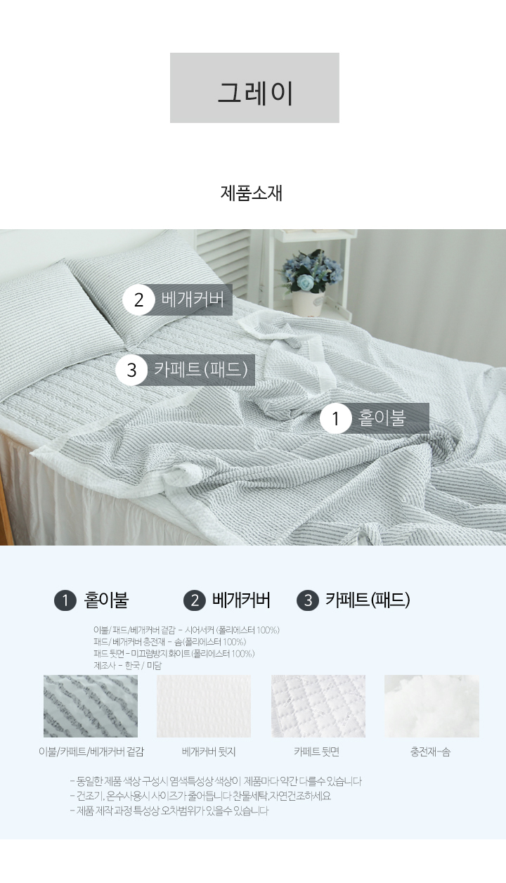 심플 시원한 시어서커 여름 홑이불세트 침구 풀세트 SS/Q 3color