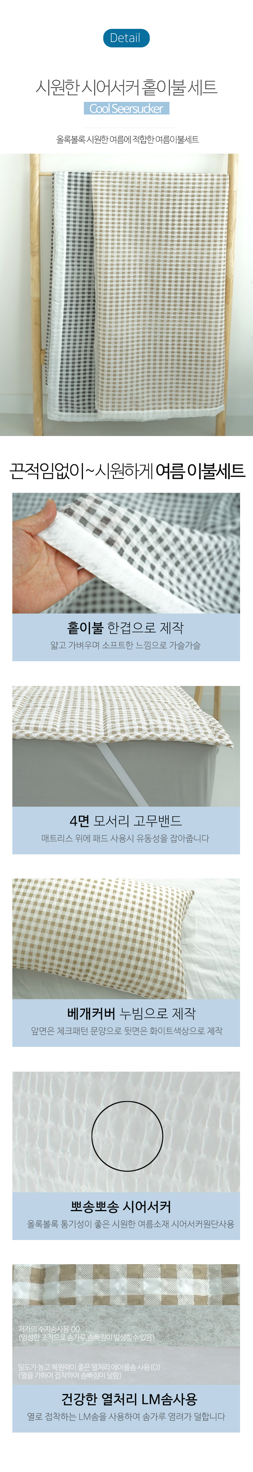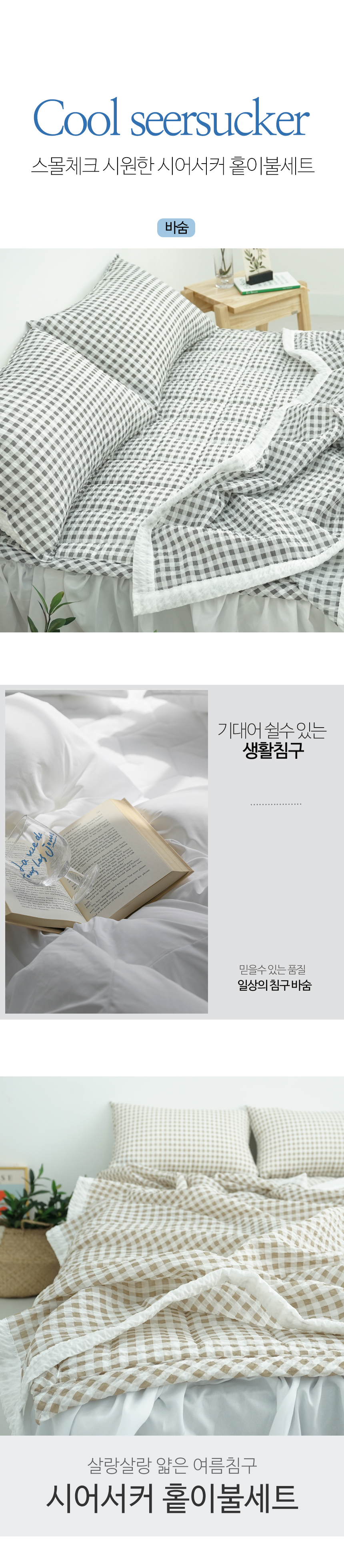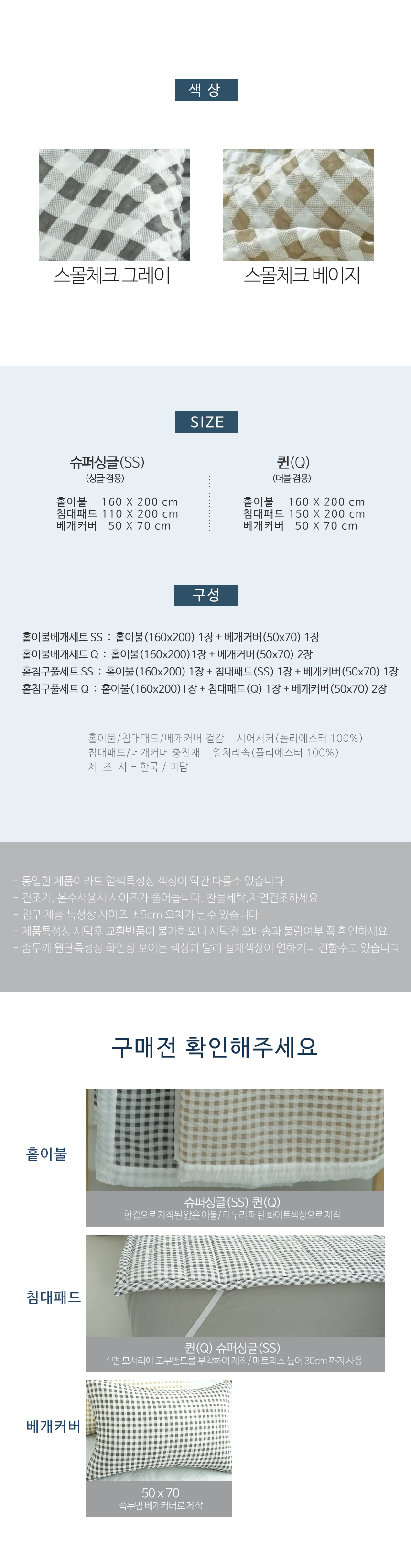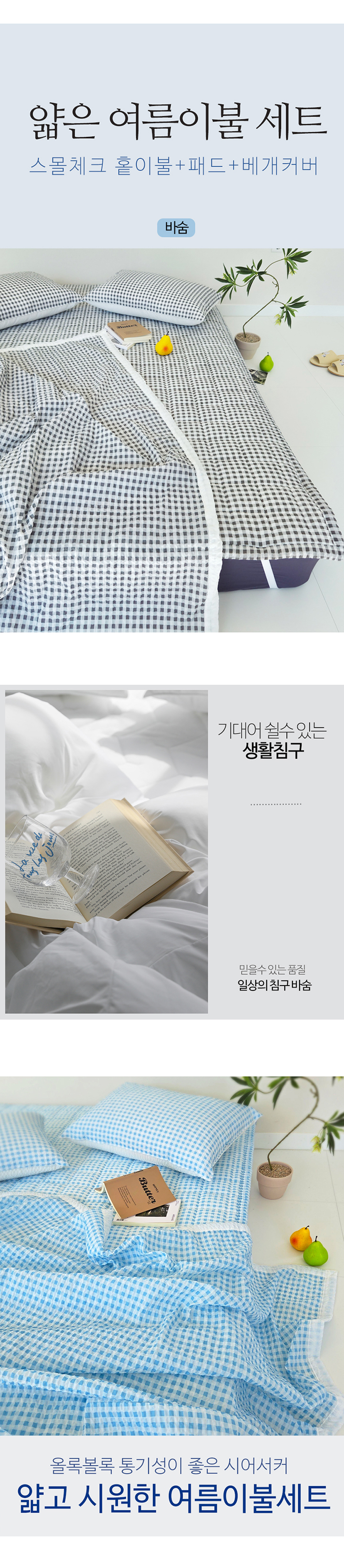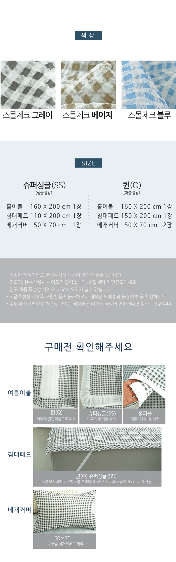 바숨 스몰체크 시어서커 여름 홑이불+침대패드+베개커버 세트 슈퍼싱글 SS