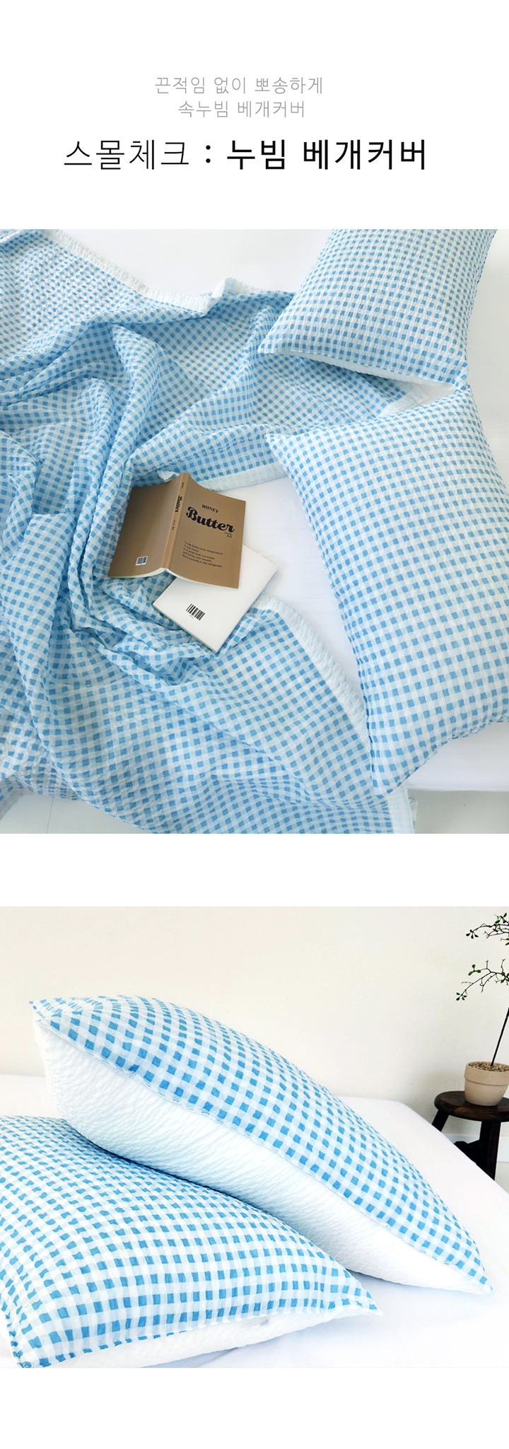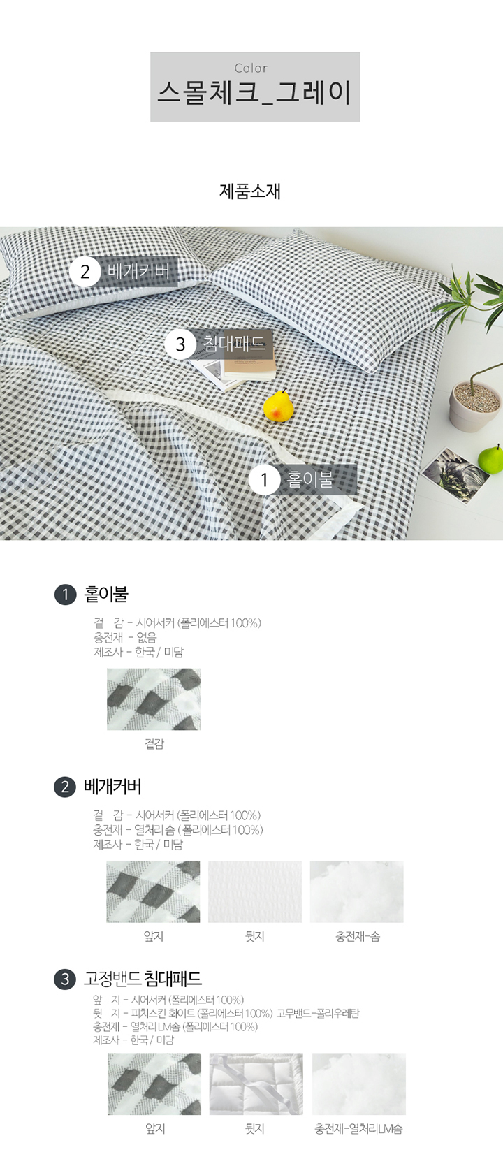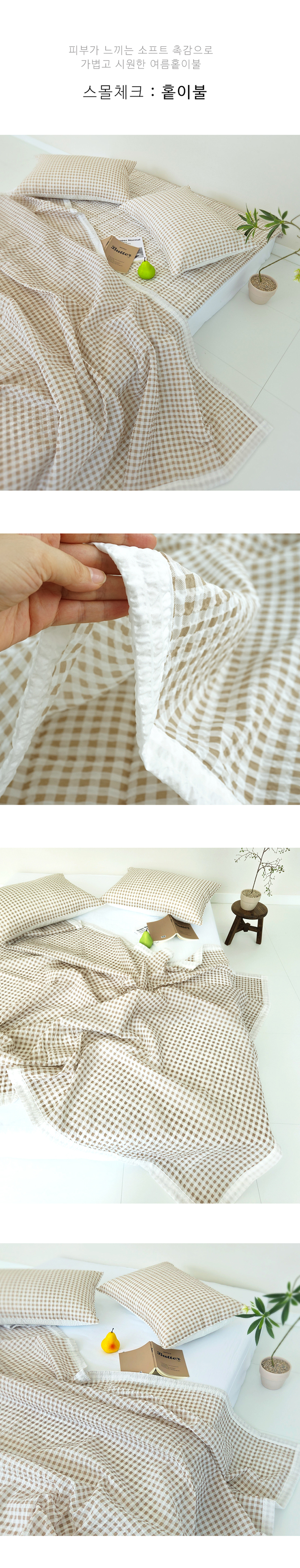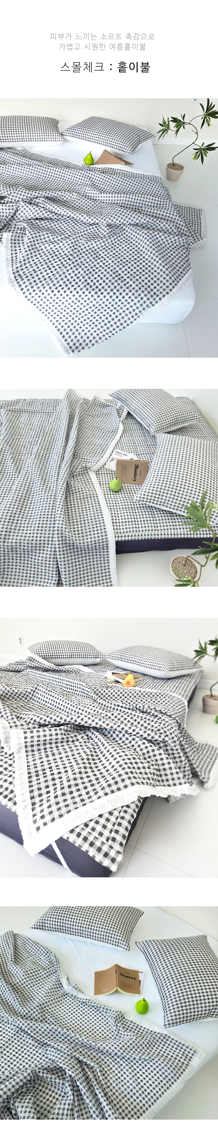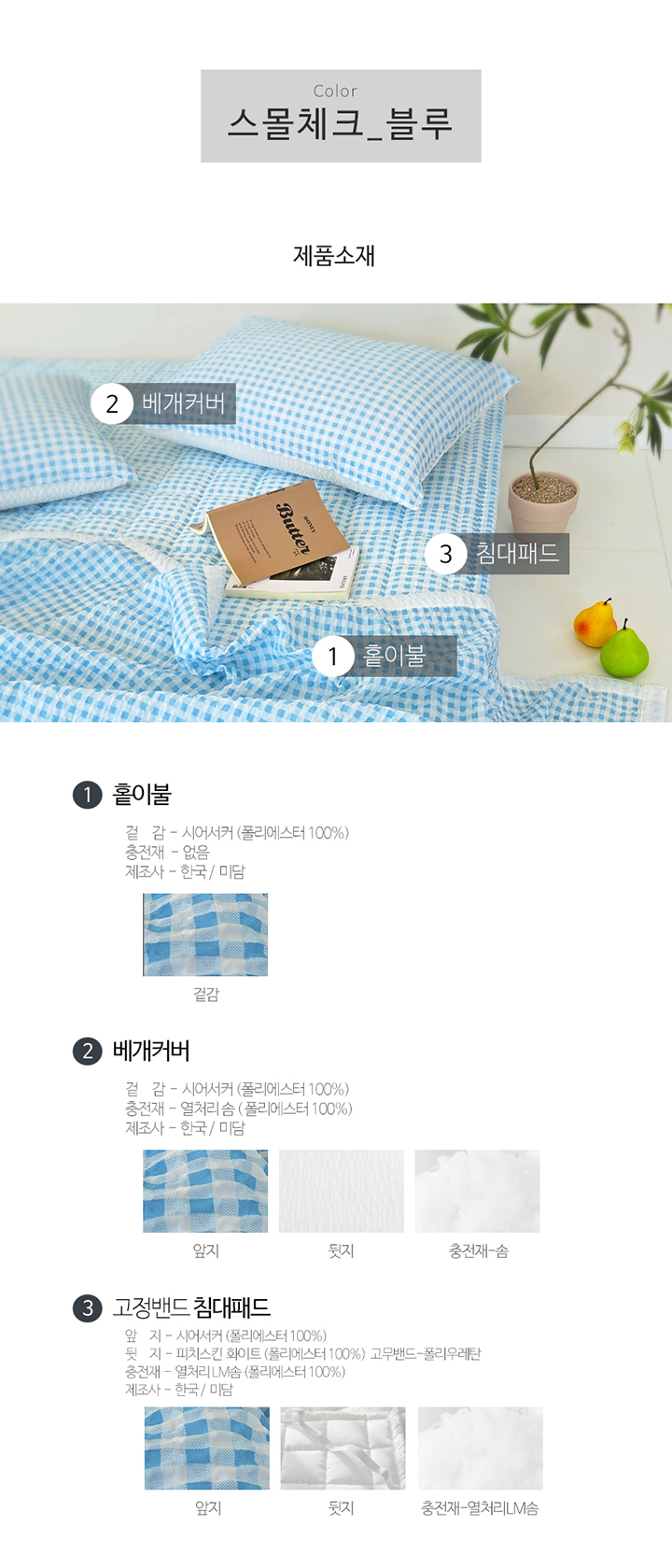 바숨 스몰체크 시어서커 여름 홑이불+침대패드+베개커버 세트 슈퍼싱글 SS