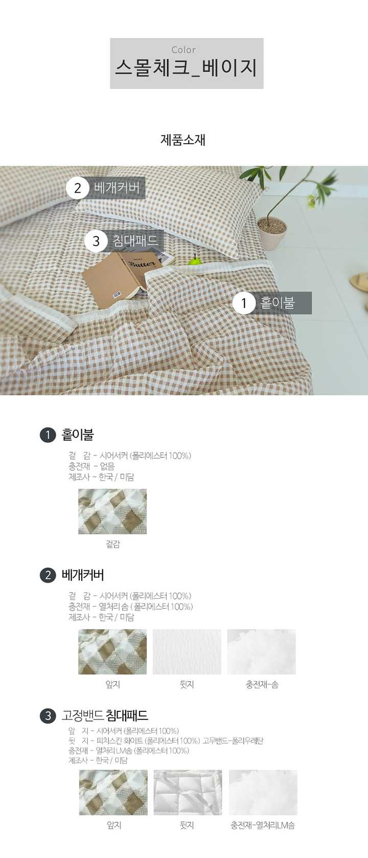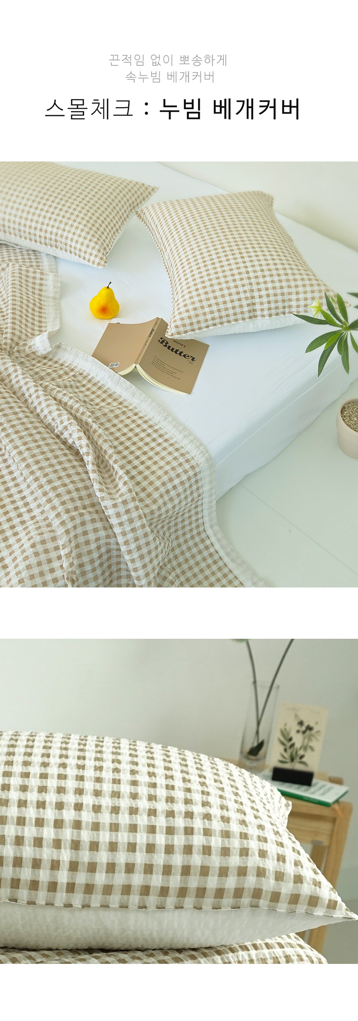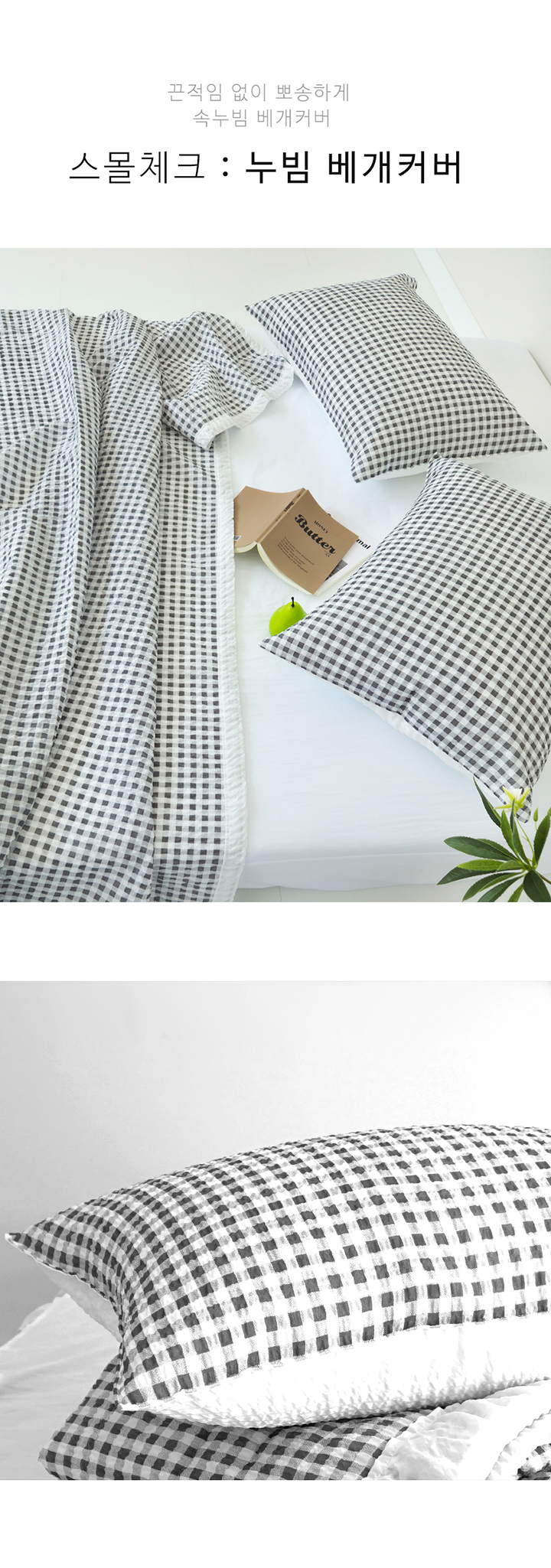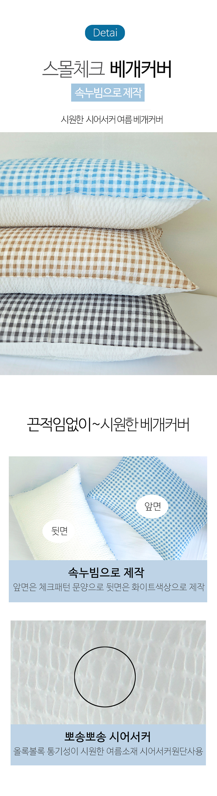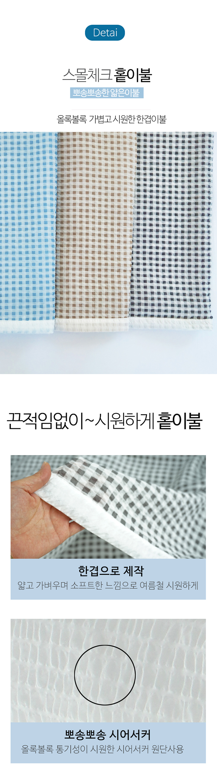 바숨 스몰체크 시어서커 여름 홑이불+침대패드+베개커버 세트 슈퍼싱글 SS