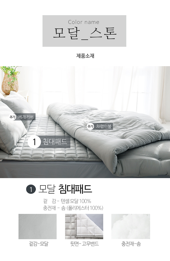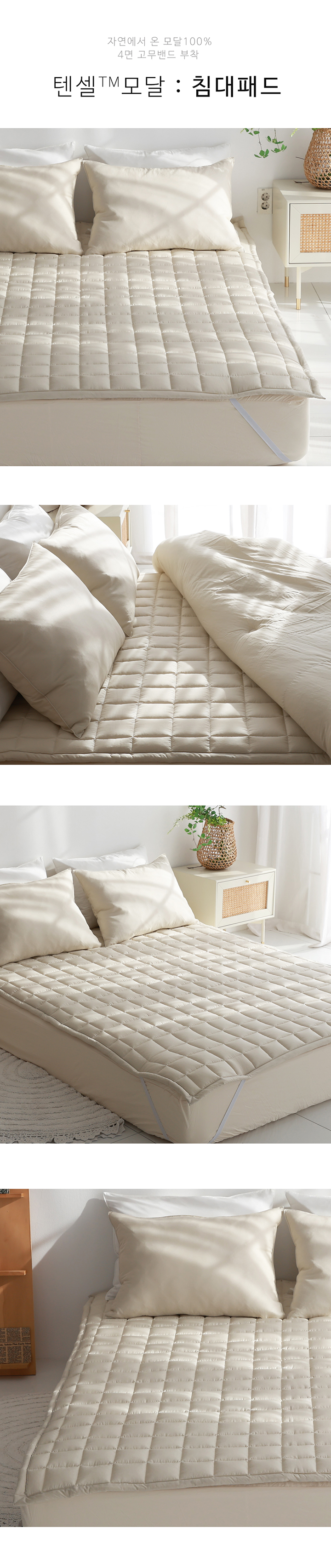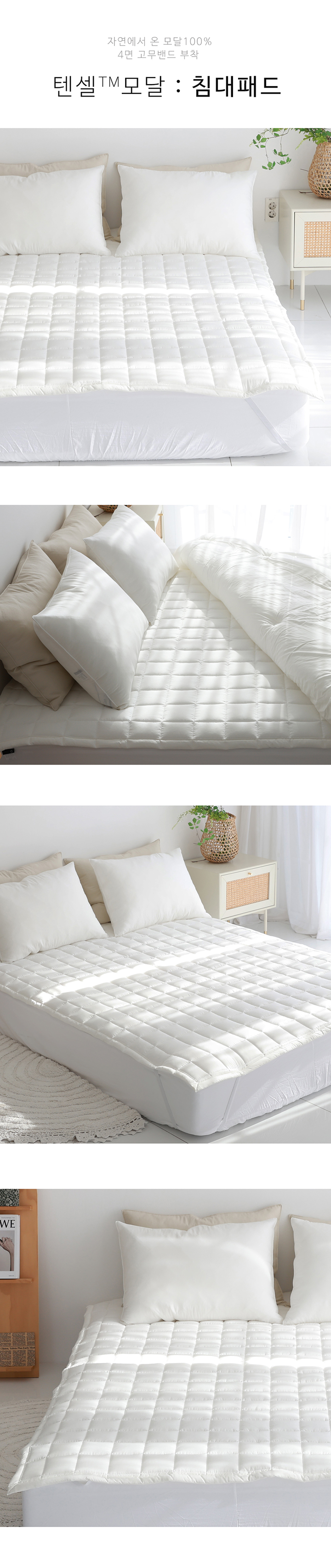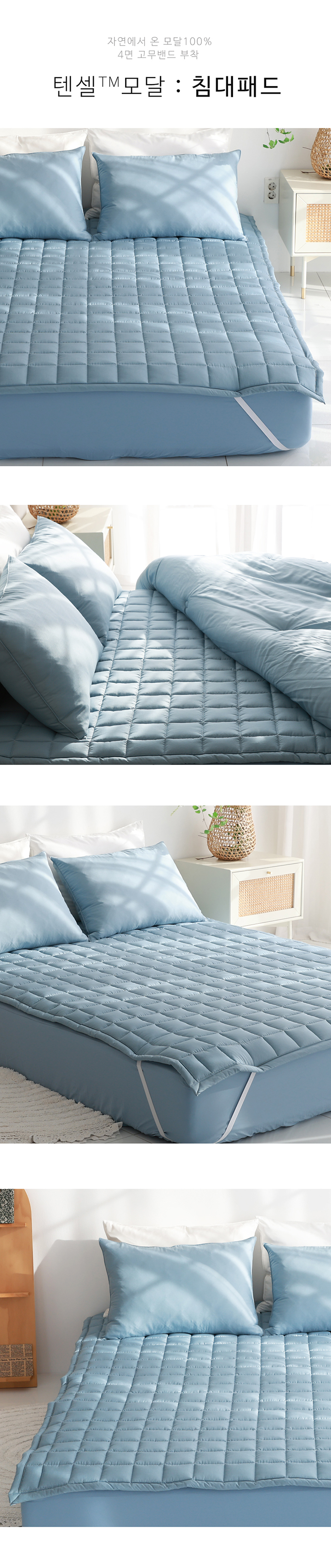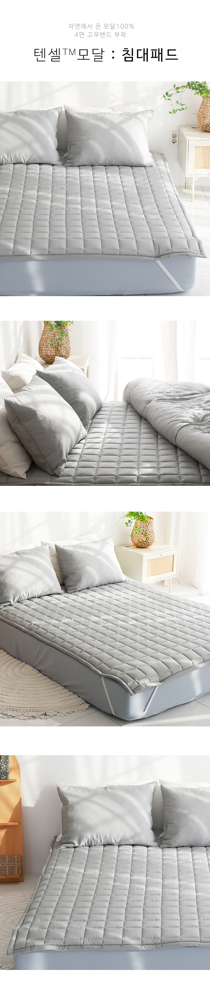 텐셀 모달 100 고정밴드 사계절 누빔 침대패드 SS/Q 5color
