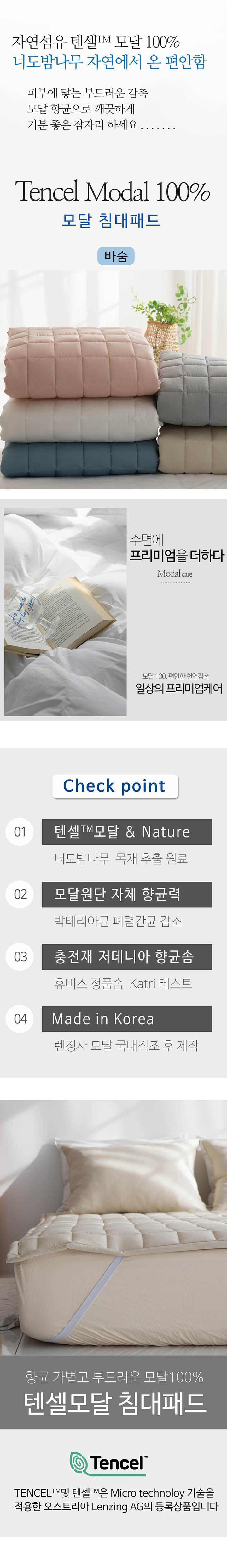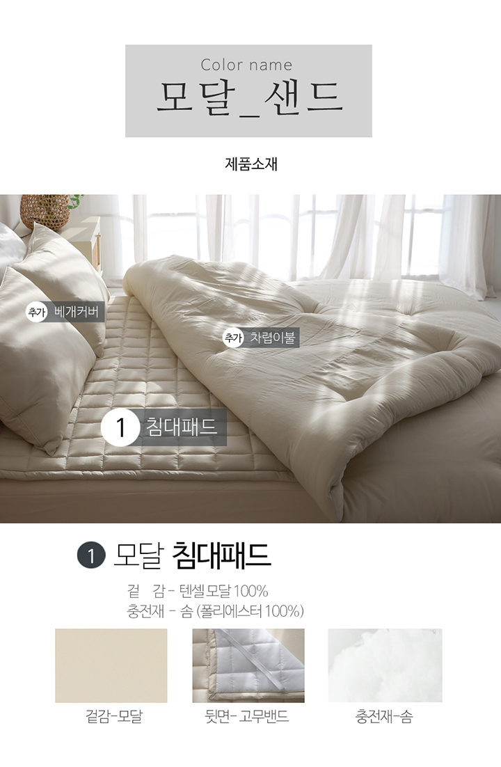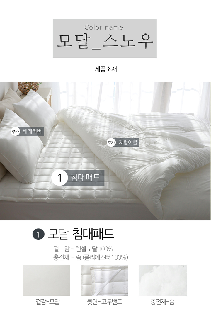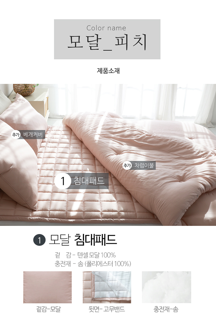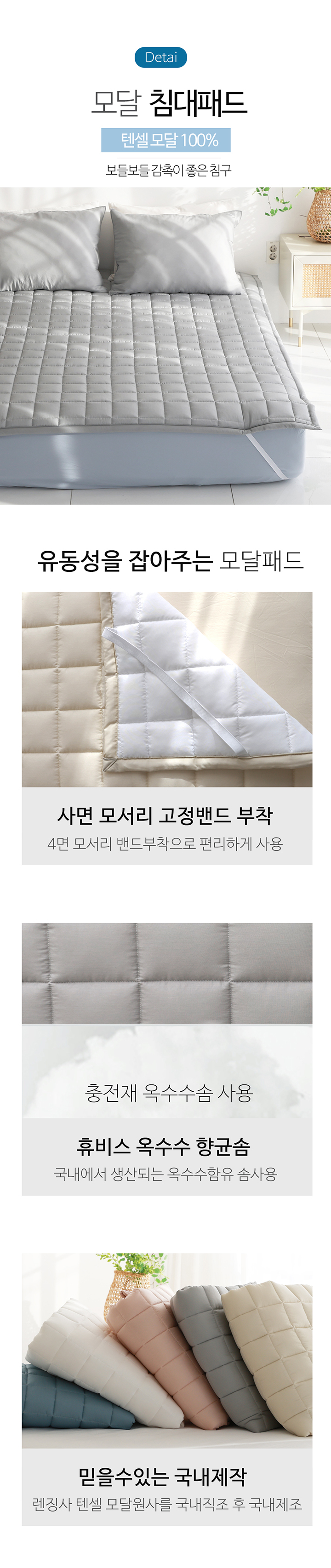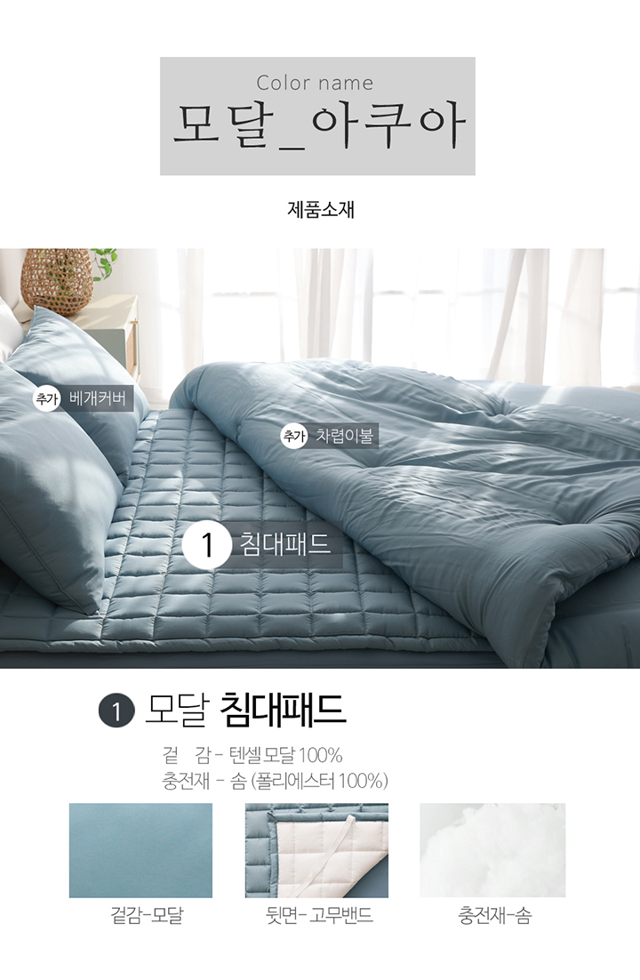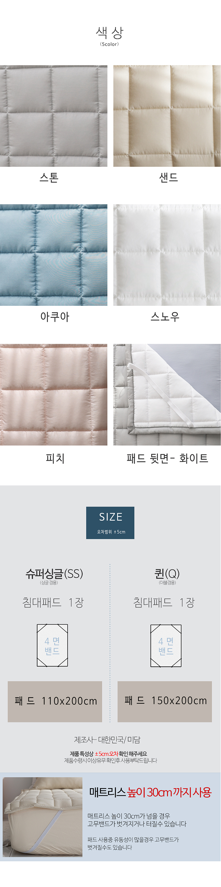 텐셀 모달 100 고정밴드 사계절 누빔 침대패드 SS/Q 5color