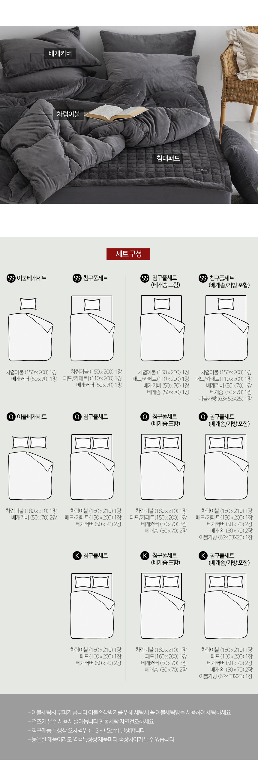 겨울 극세사 이불세트 침구 풀세트 SS/Q/K 3color