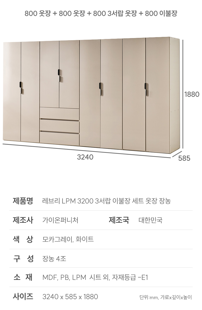 레브리 LPM 3200 3서랍 이불장 세트 옷장 장농