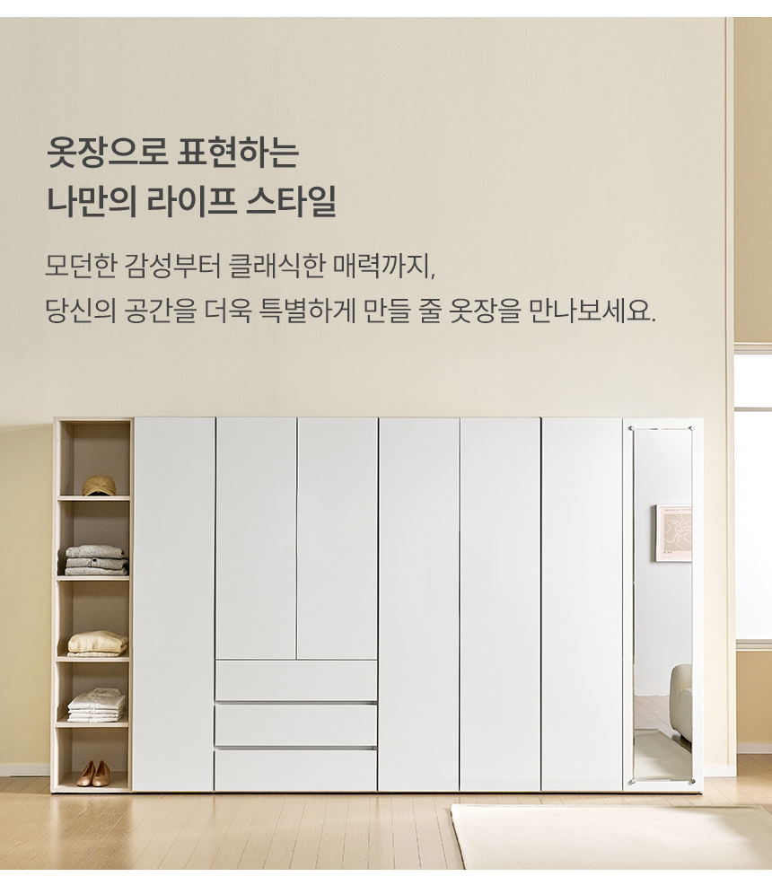 멜로우 LPM 1600 3서랍 거울도어 옷장 장농