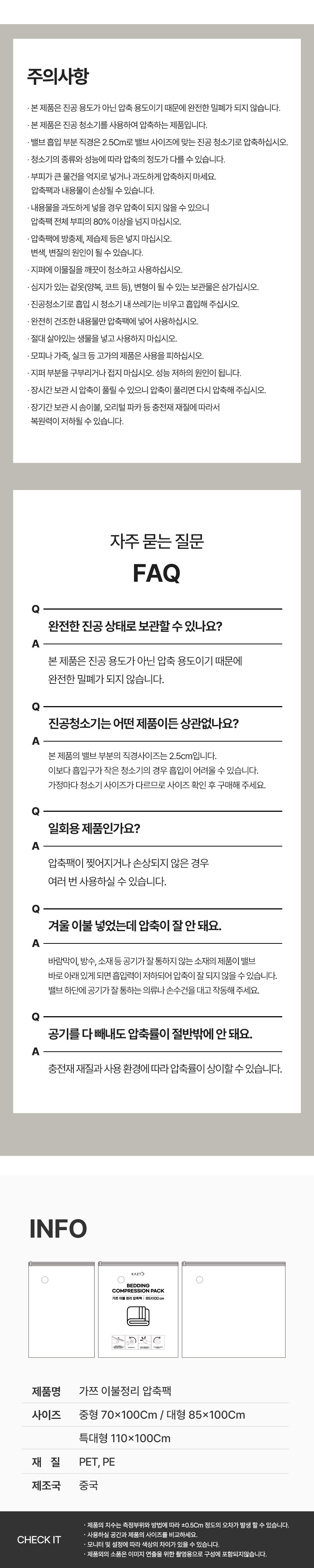 이불정리 압축팩 4팩 70X100