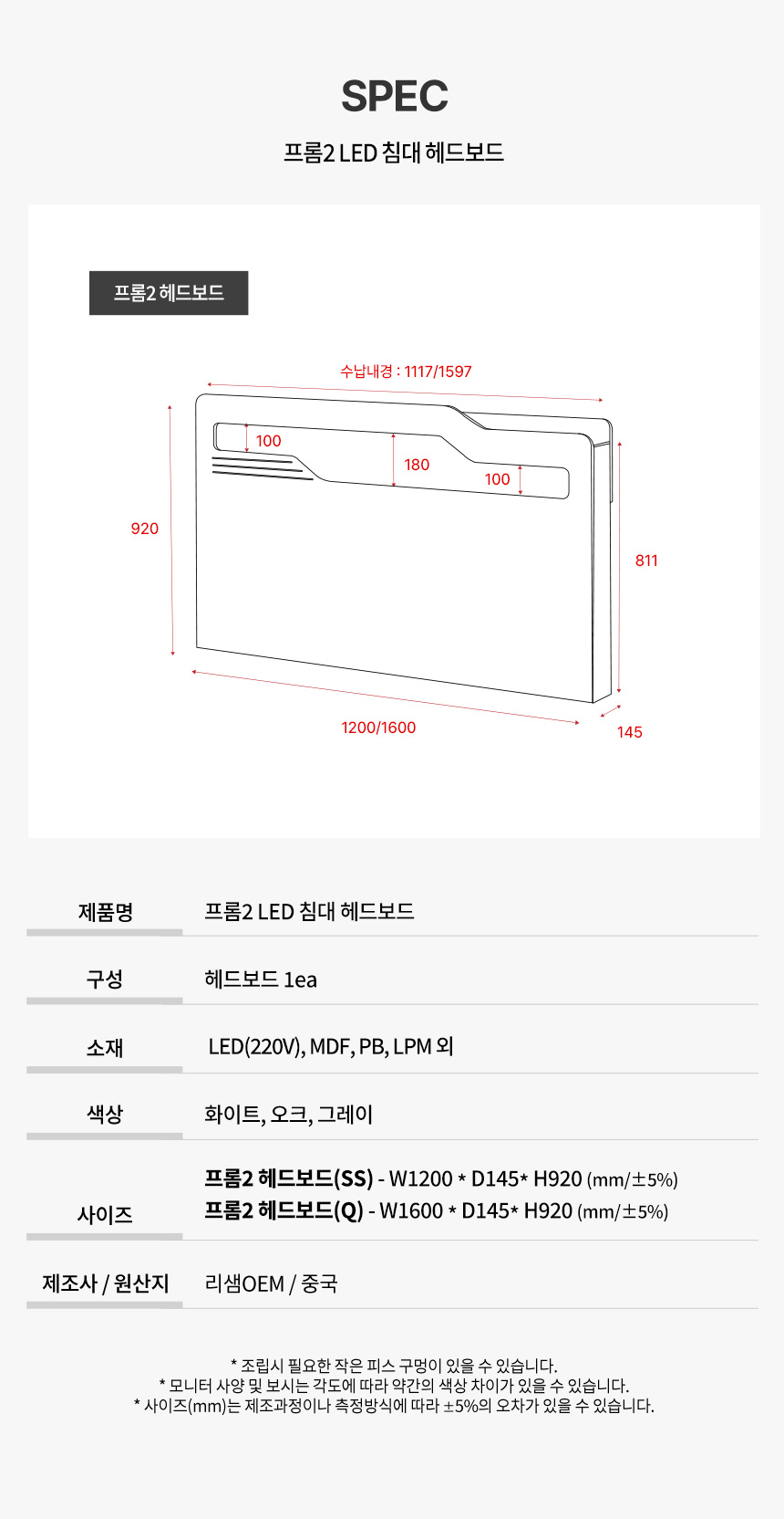 파로마 프롬2 LED 침대 헤드보드 SS
