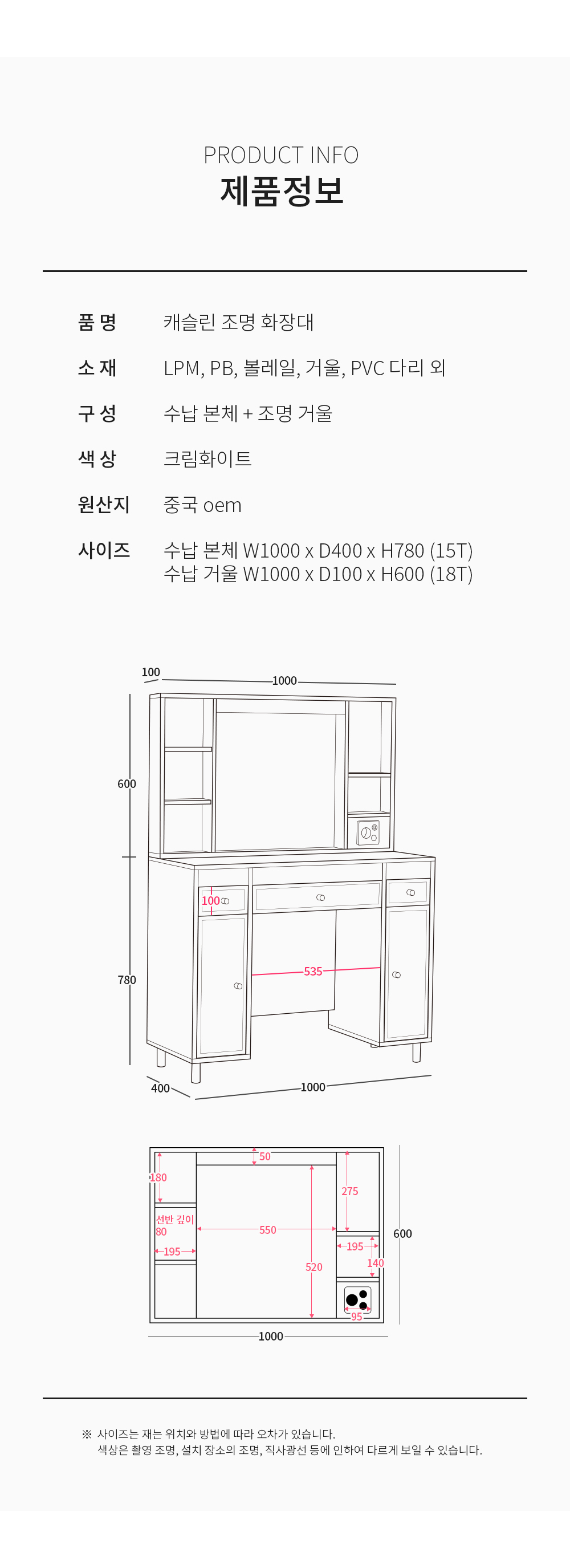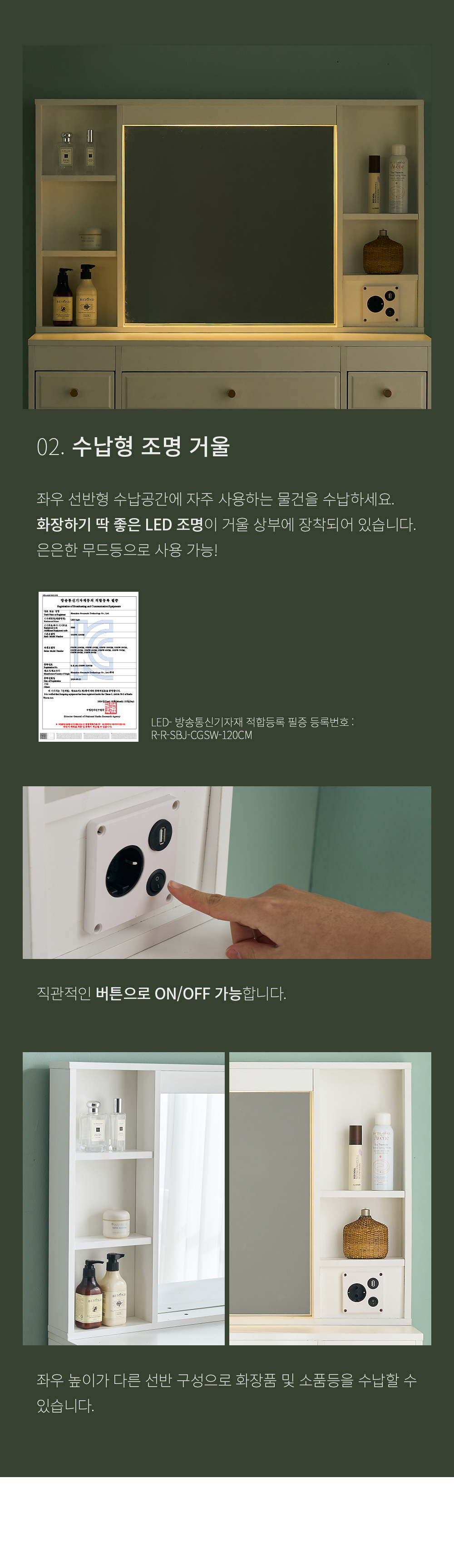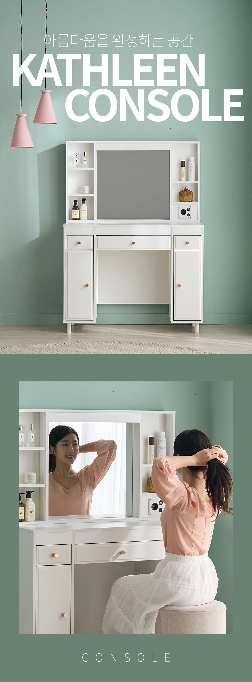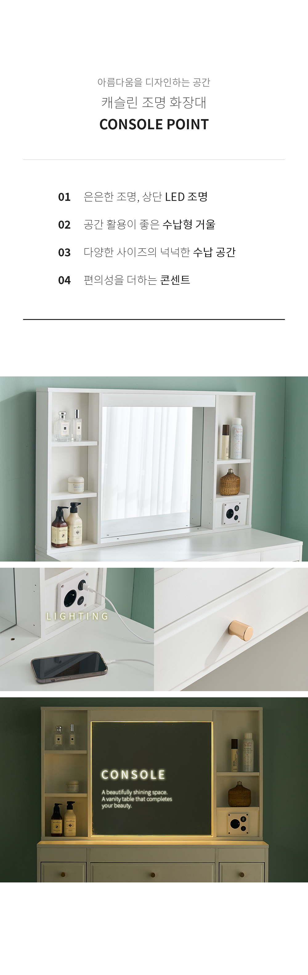 [우아미가구] 캐슬린 LED조명 수납 화장대 1000