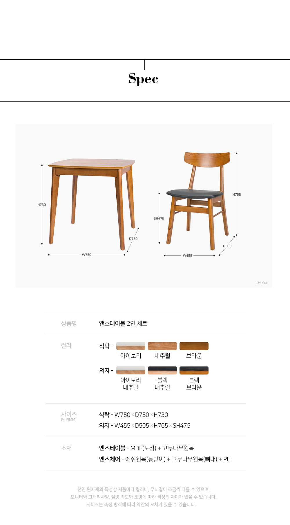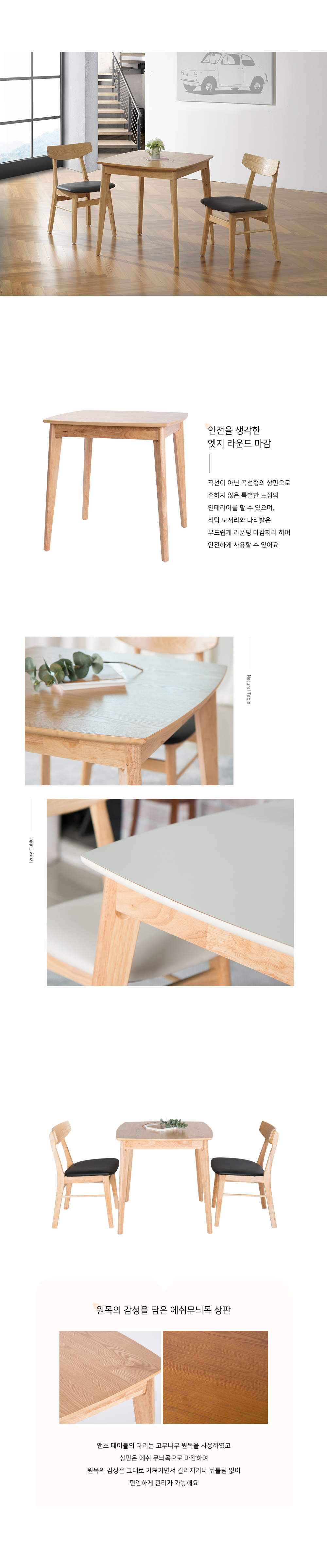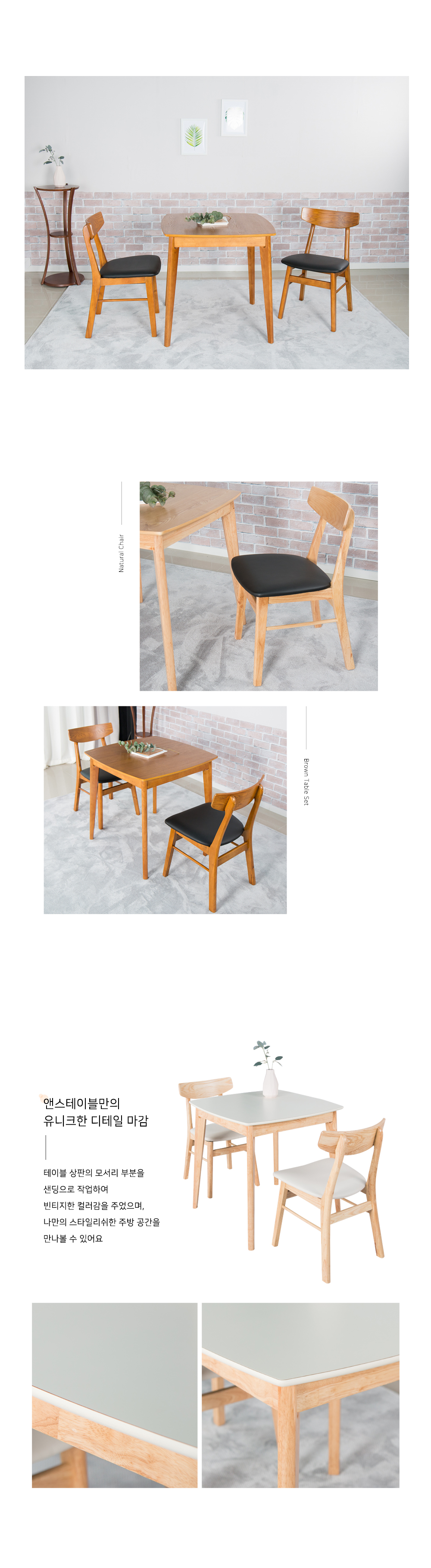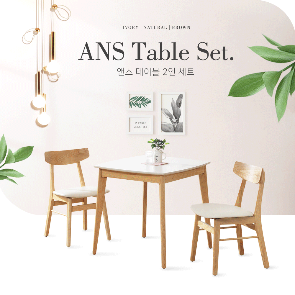 앤스 2인용 원목 식탁세트