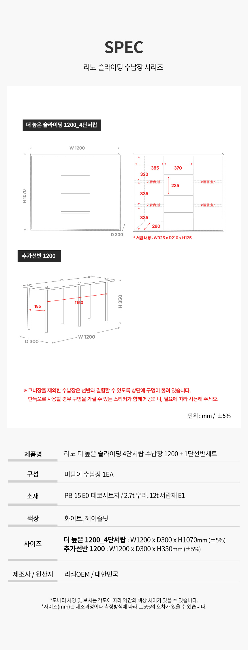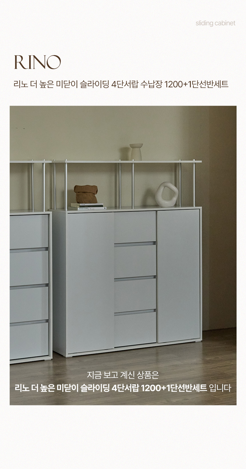 파로마 리노 E0 더 높은 미닫이 4단 서랍 수납장 1200 + 1단선반