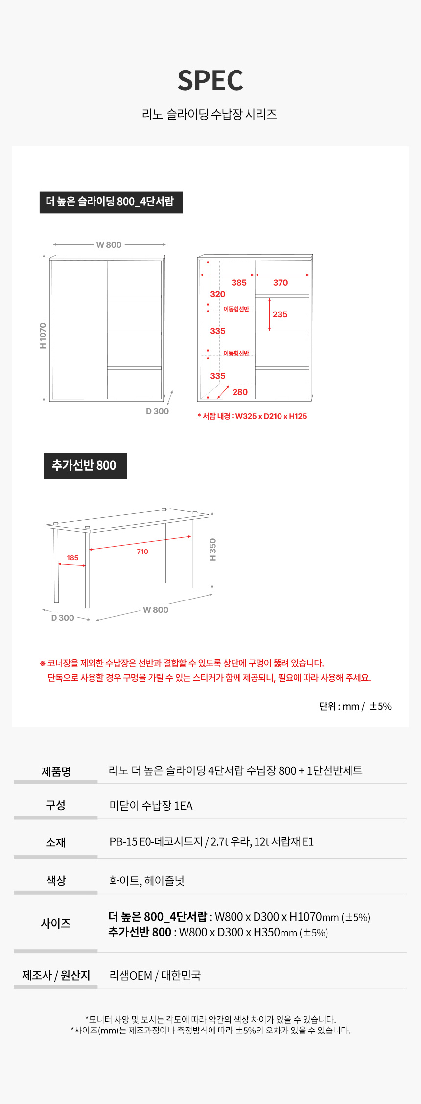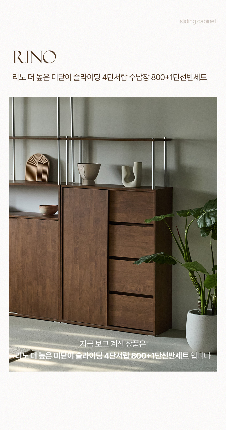 파로마 리노 E0 더 높은 미닫이 4단 서랍 수납장 800 + 1단선반