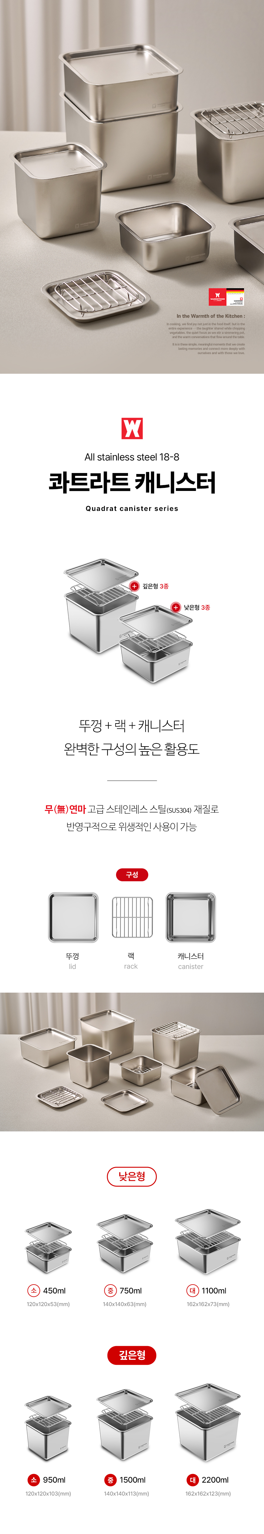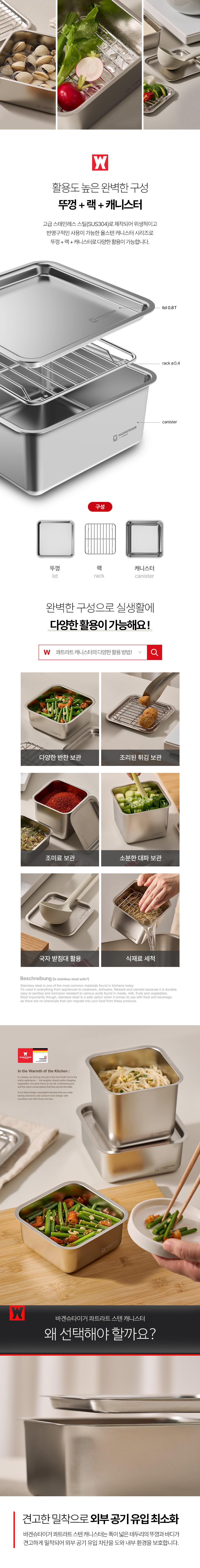 바겐슈타이거 콰트라트 스텐 304 캐니스터 깊은형 중 1500ml