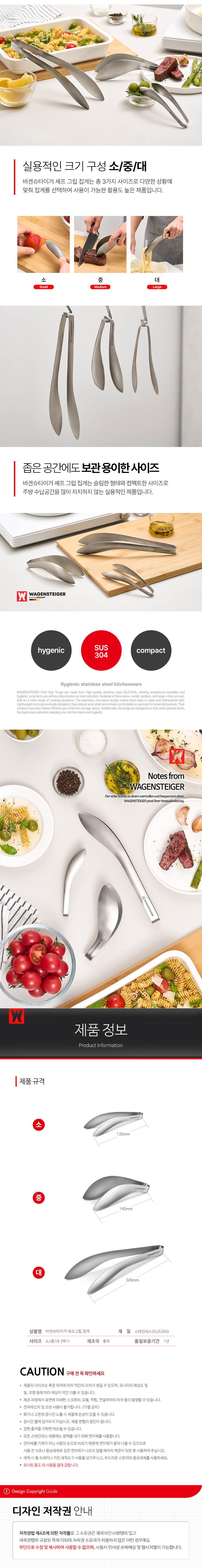 바겐슈타이거 스텐 304 셰프그립 집게 대