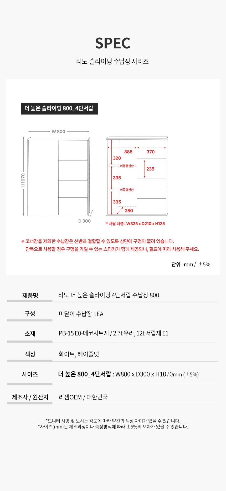 파로마 리노 E0 더 높은 미닫이 4단 서랍 수납장 800