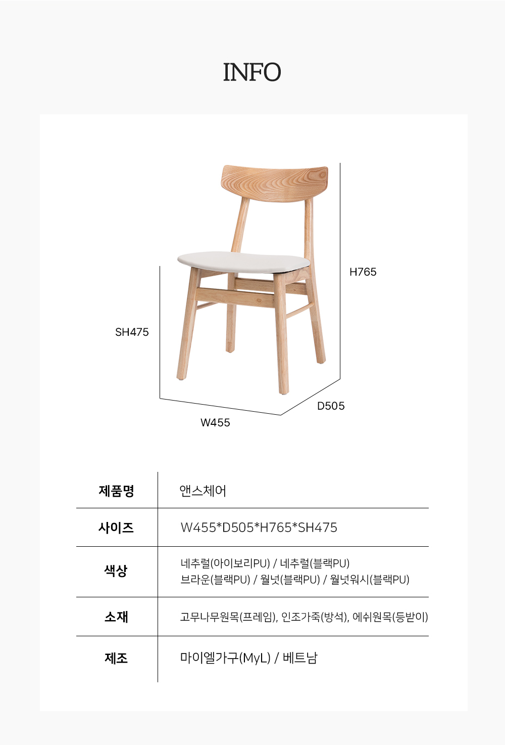 앤스 원목 의자