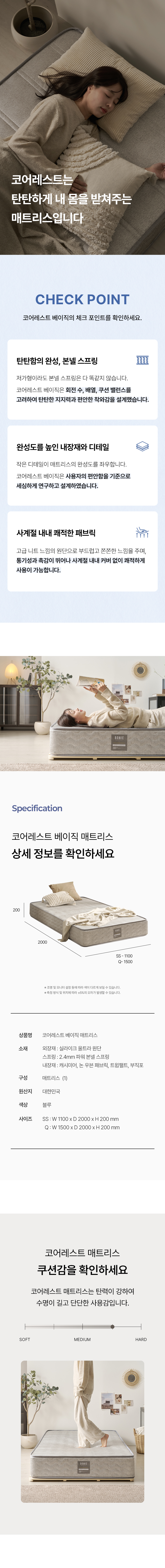 코어레스트 베이직 20cm 탄탄한 본넬 스프링 침대 매트리스 SS/Q