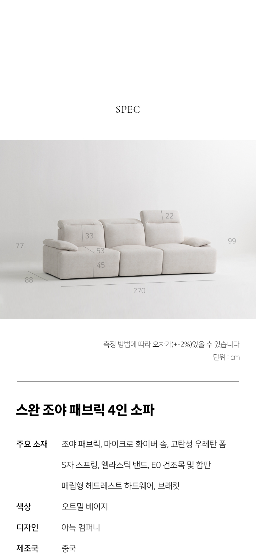 아늑 스완 아쿠아텍스 조야 패브릭 무빙 헤드 4인 소파