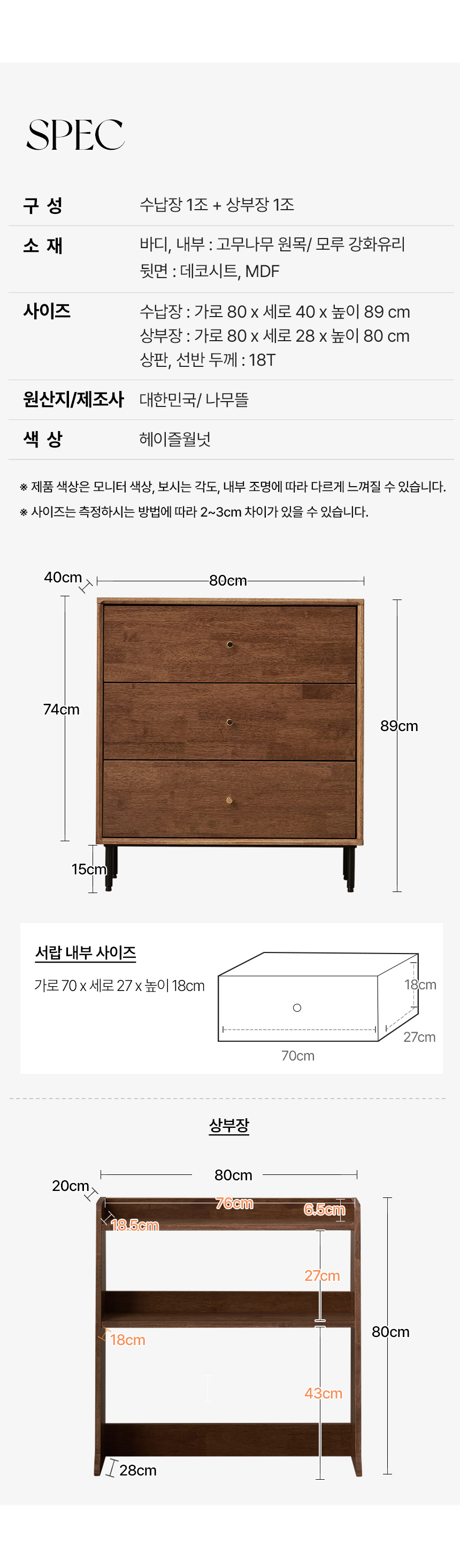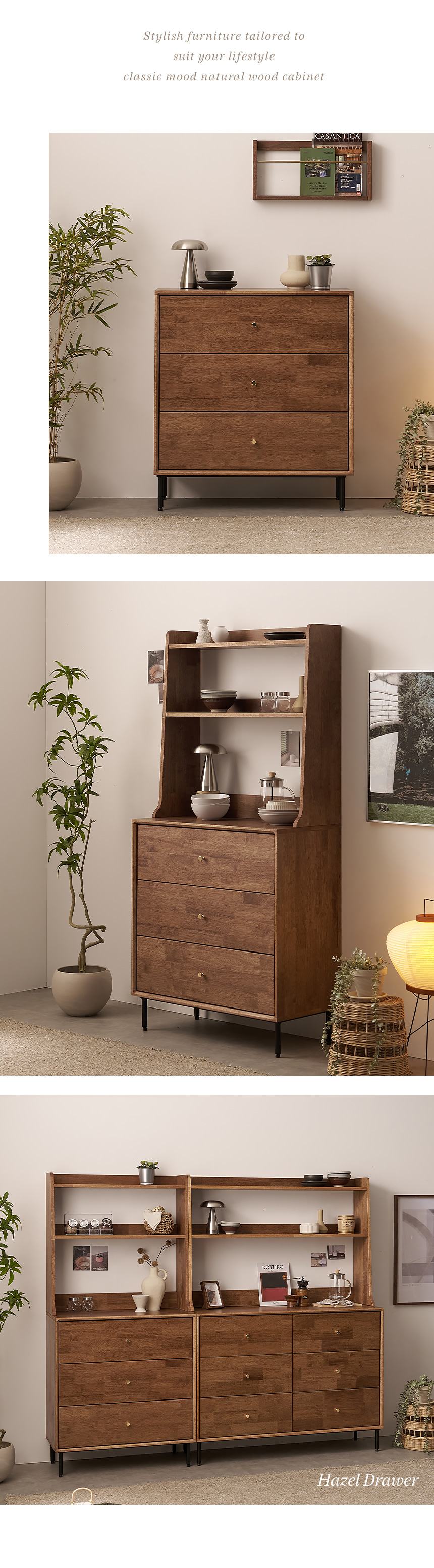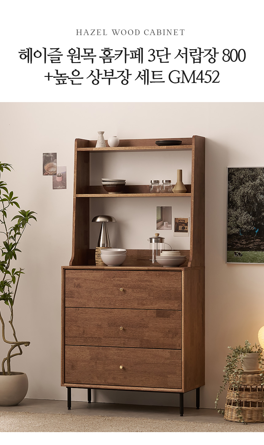 헤이즐 원목 홈카페 3단 서랍장 800+높은 상부장 세트 GM452C