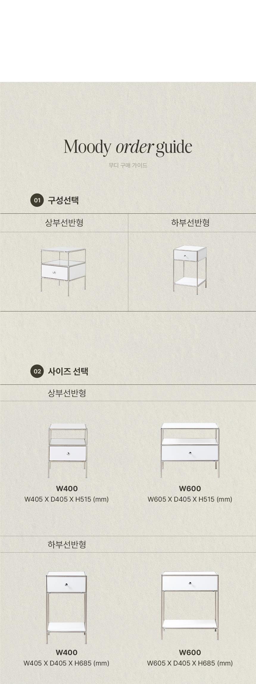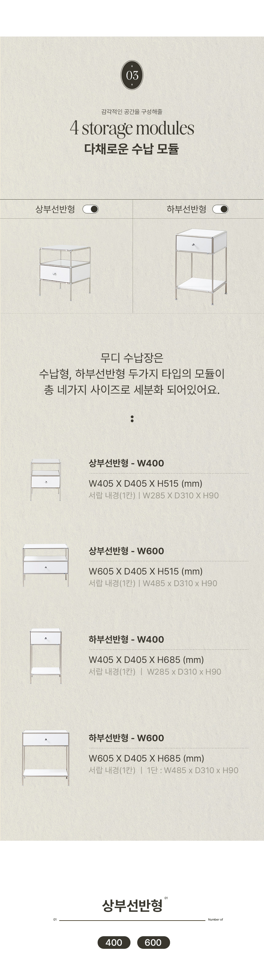 무디 미드센추리 모듈 선반 침대 협탁 400 600 (상부/하부)