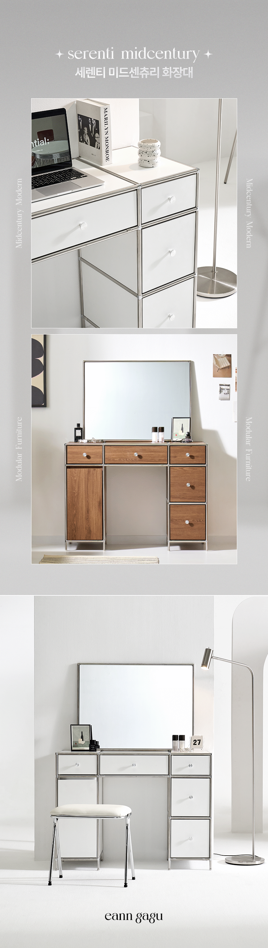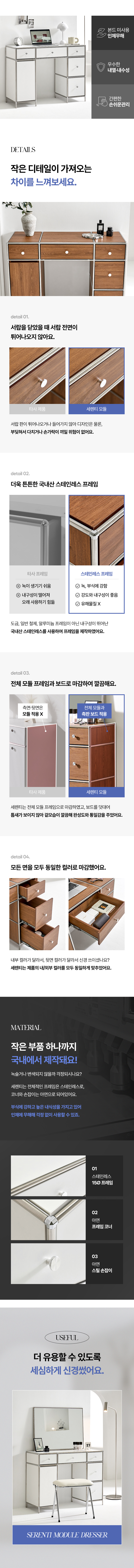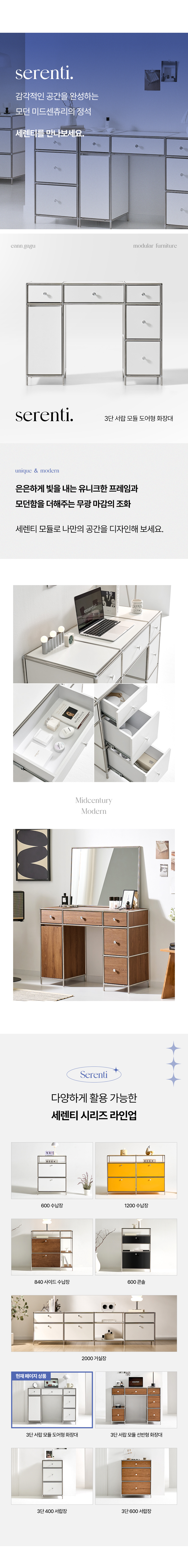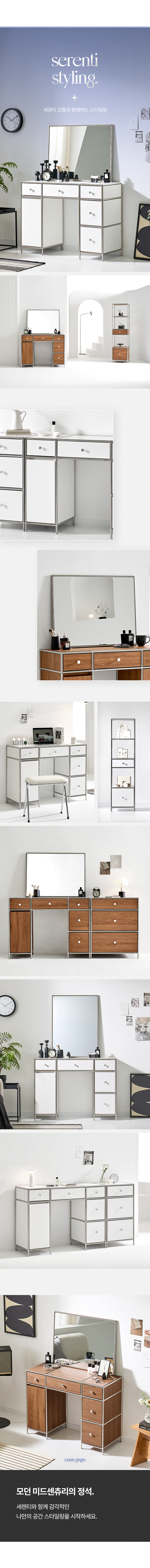 세렌티 3단 서랍 모듈 도어형 수납 선반 화장대 2colors (거울/서랍장 선택)