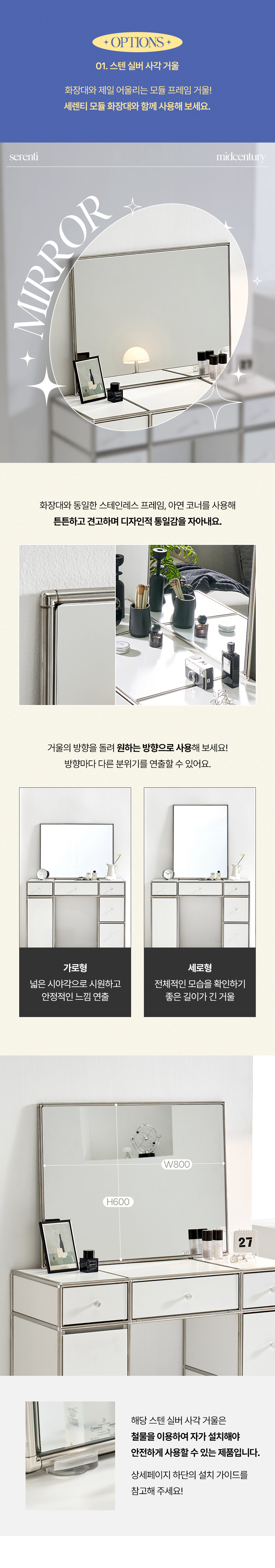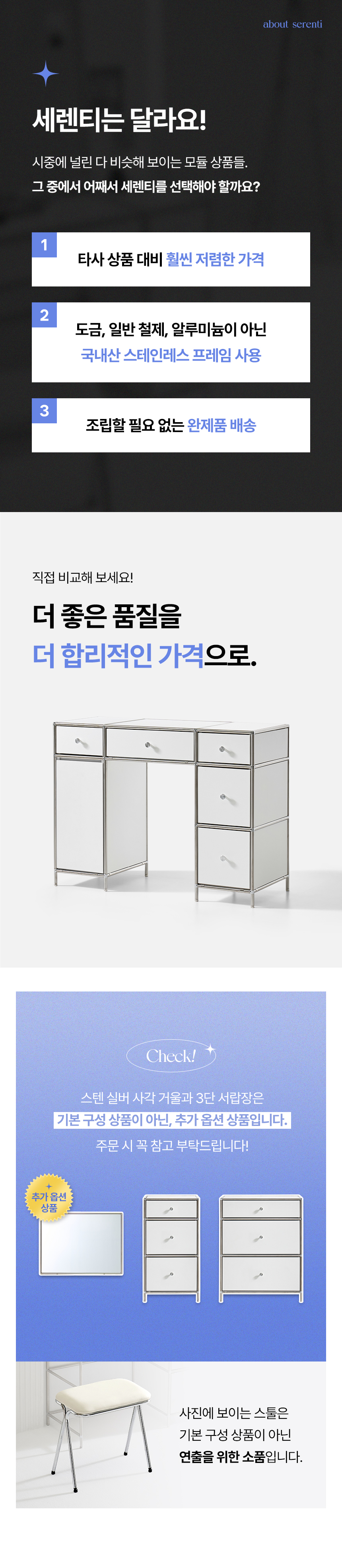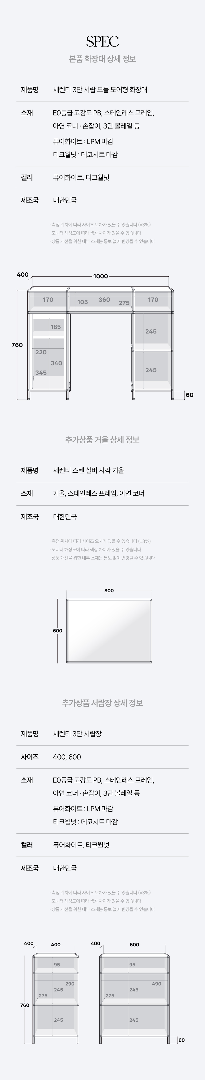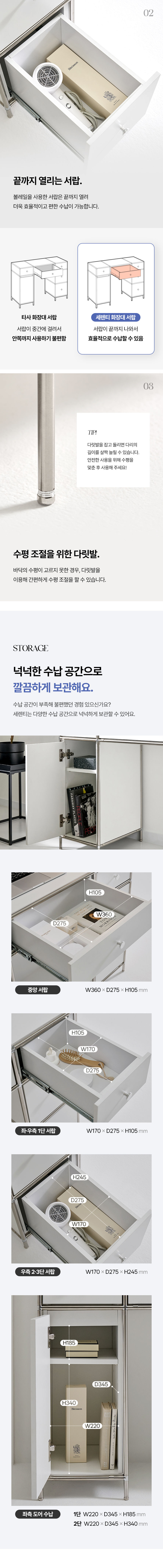 세렌티 3단 서랍 모듈 도어형 수납 선반 화장대 2colors (거울/서랍장 선택)