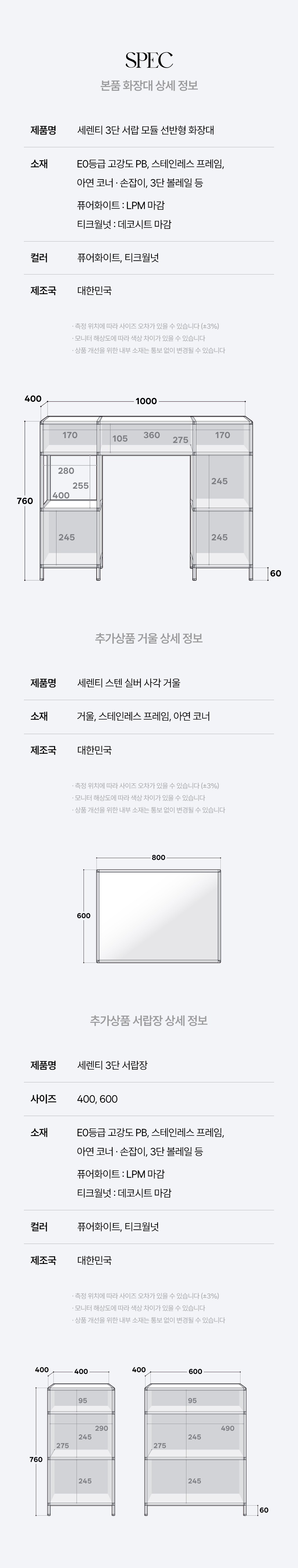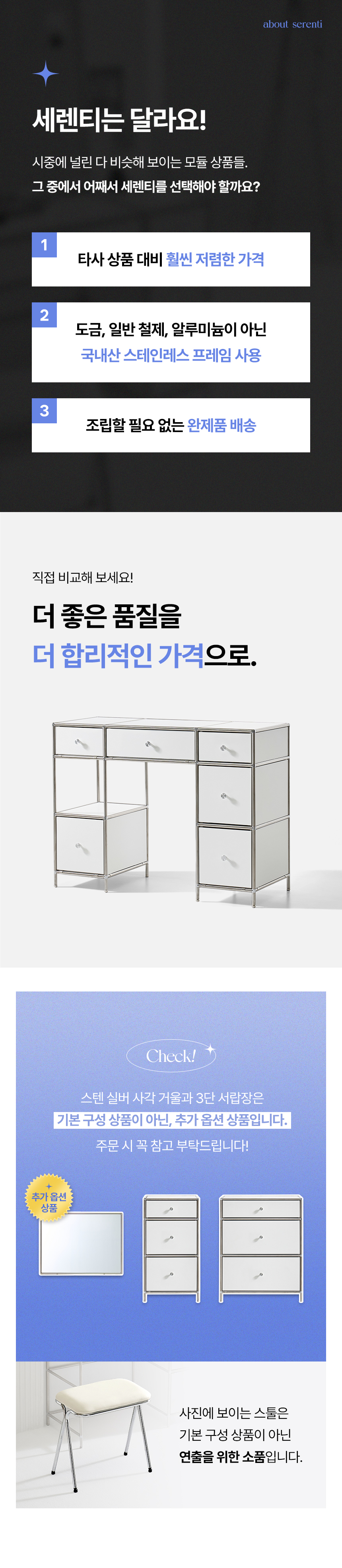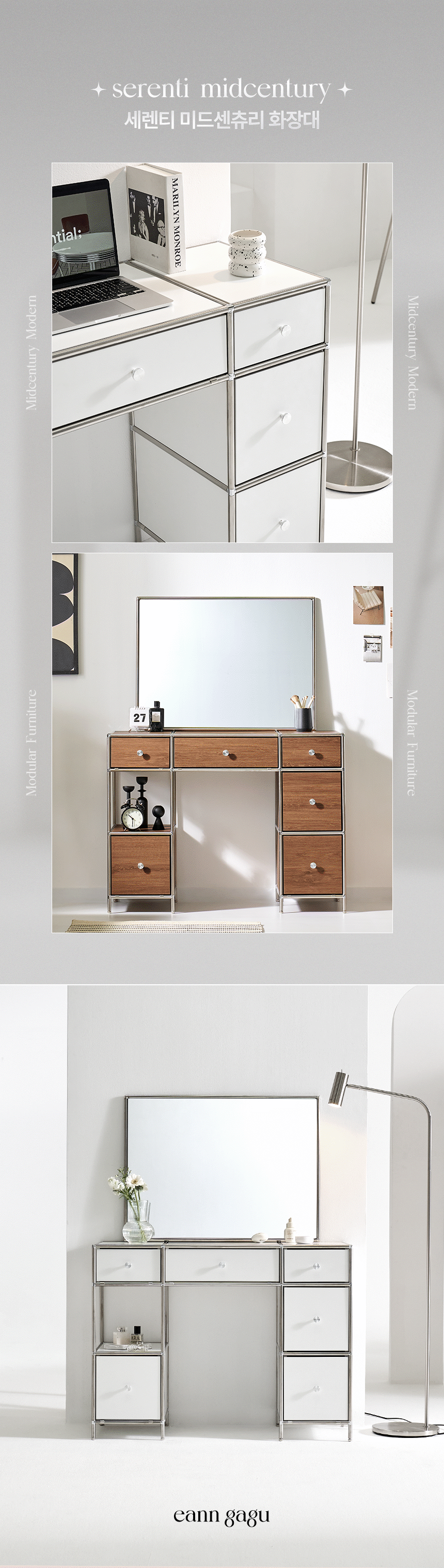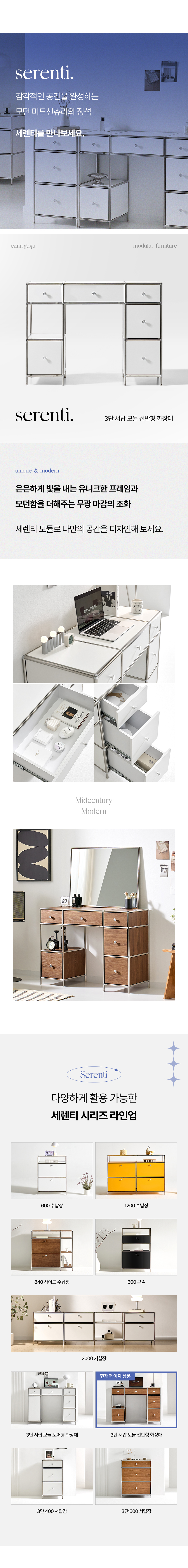 세렌티 3단 서랍 모듈 선반형 화장대 2colors (서랍장/거울 선택)