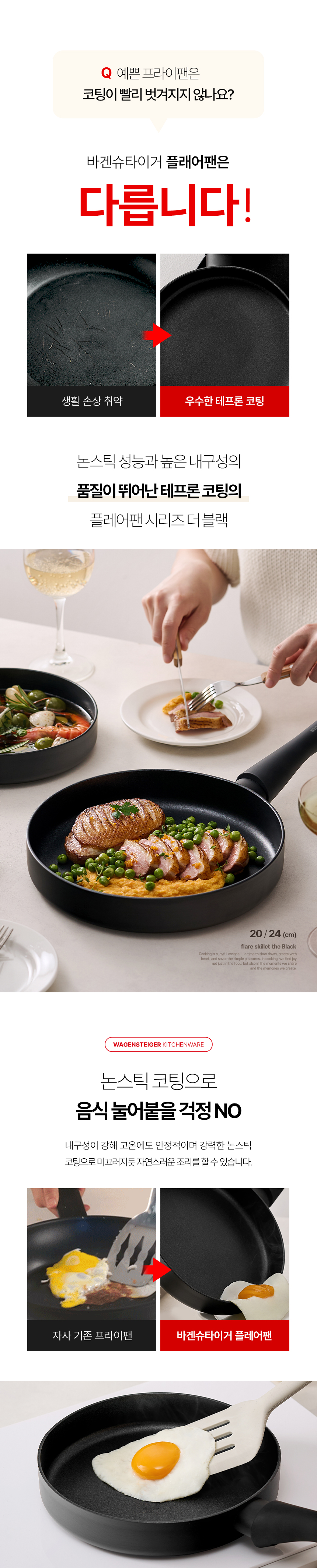 바겐슈타이거 플레어 프라이팬 더 블랙 20cm 테프론 논스틱 코팅