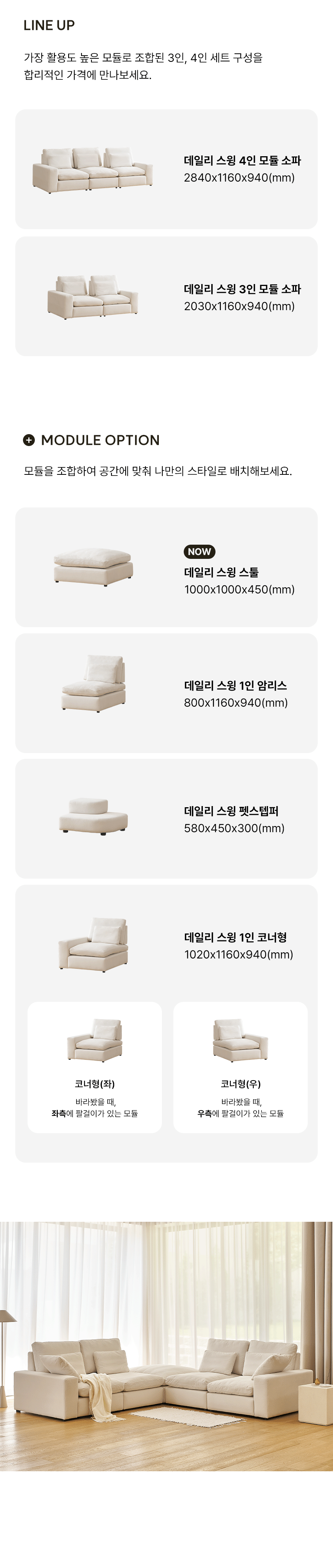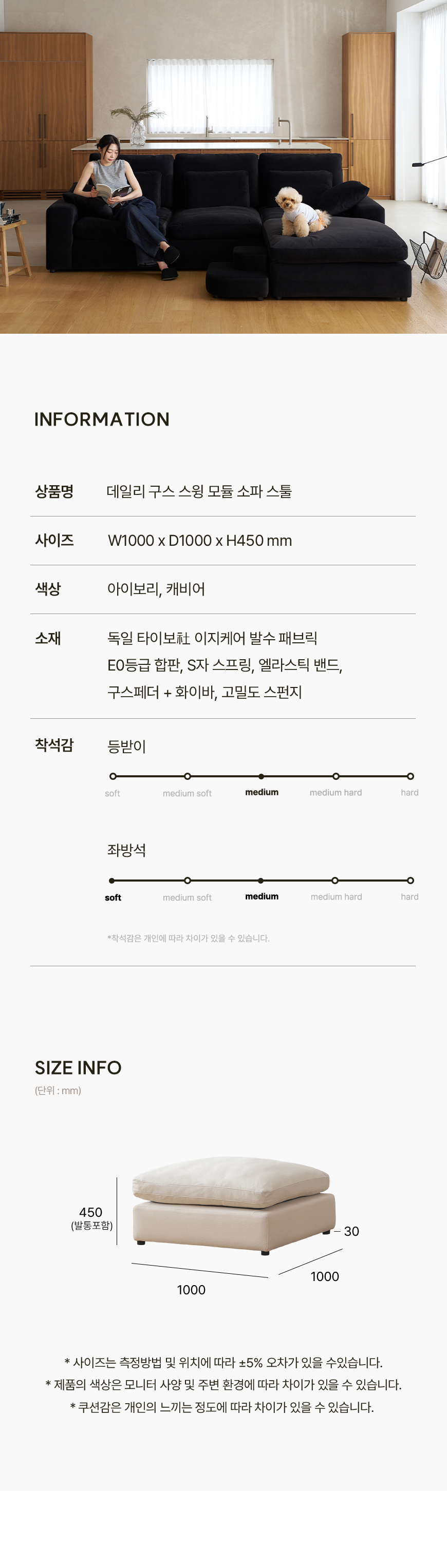 (한샘몰pick) 데일리 스윙 구스 모듈 타이보텍스 패브릭소파 스툴 (2colors)