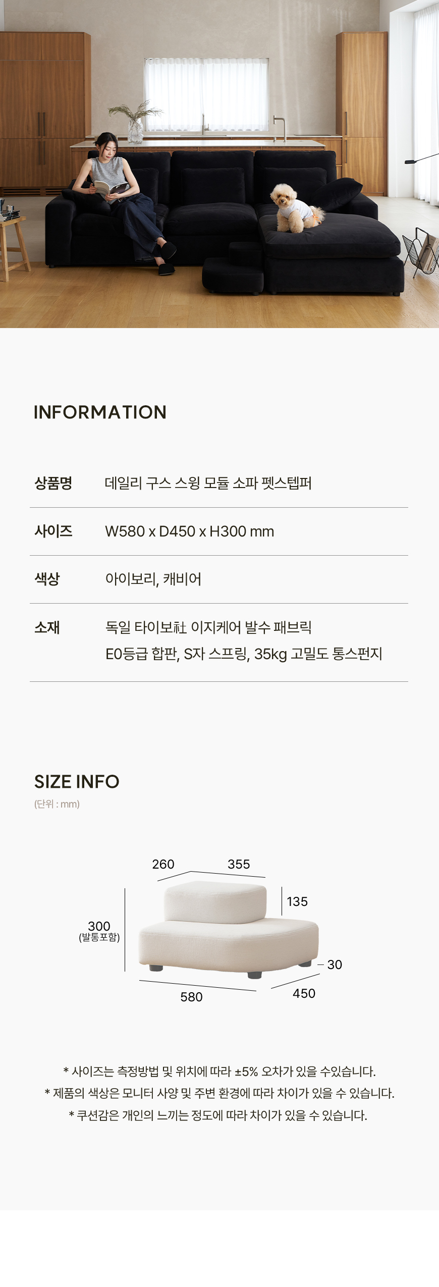 (한샘몰pick) 데일리 스윙 구스 모듈 타이보텍스 패브릭소파 펫스텝퍼 (2colors)