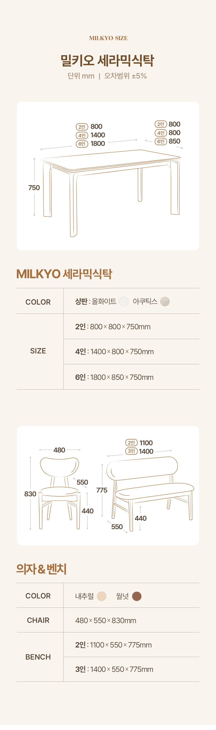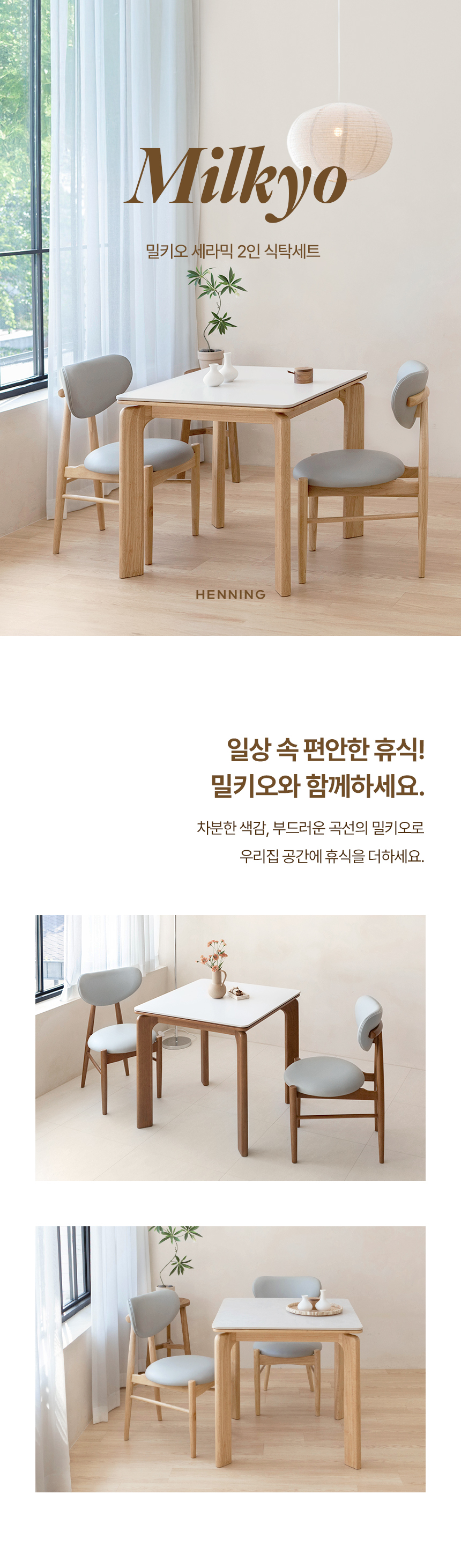 [특가 ~2/9]밀키오 세라믹식탁 세트 2인용 원목 식탁 800 의자2