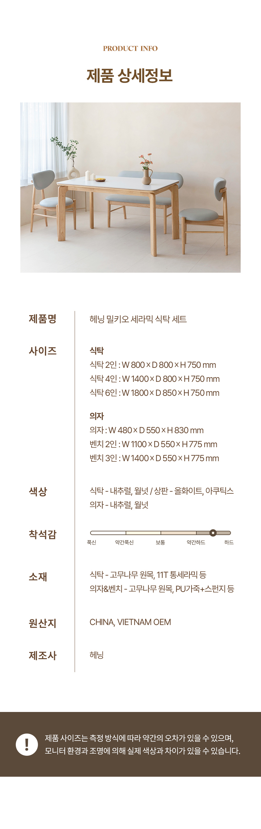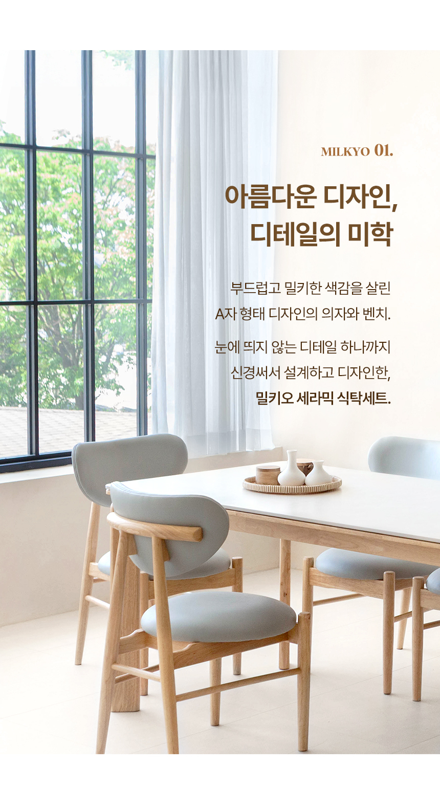 밀키오 세라믹식탁 세트 4인용 원목 식탁 1400 의자2 벤치1