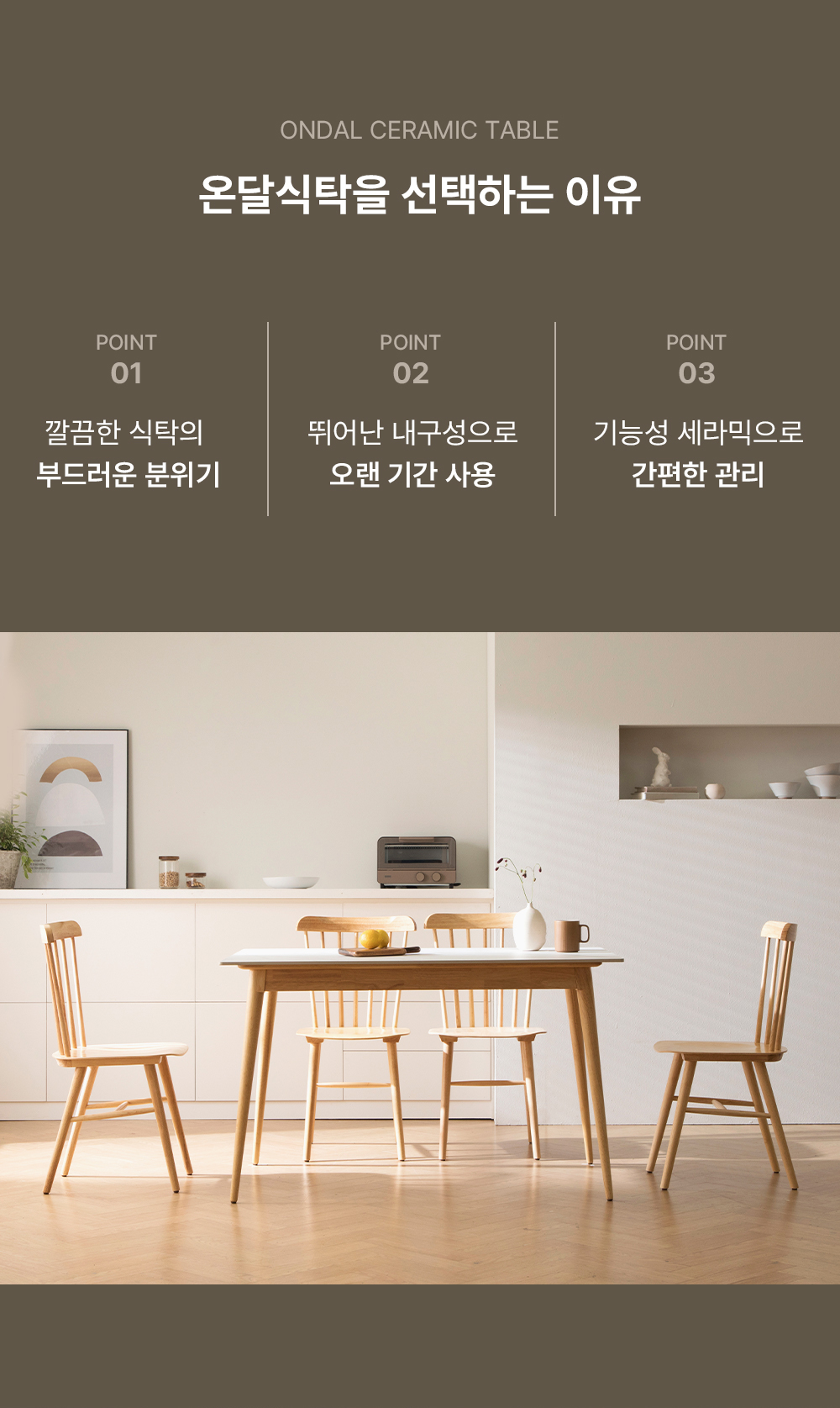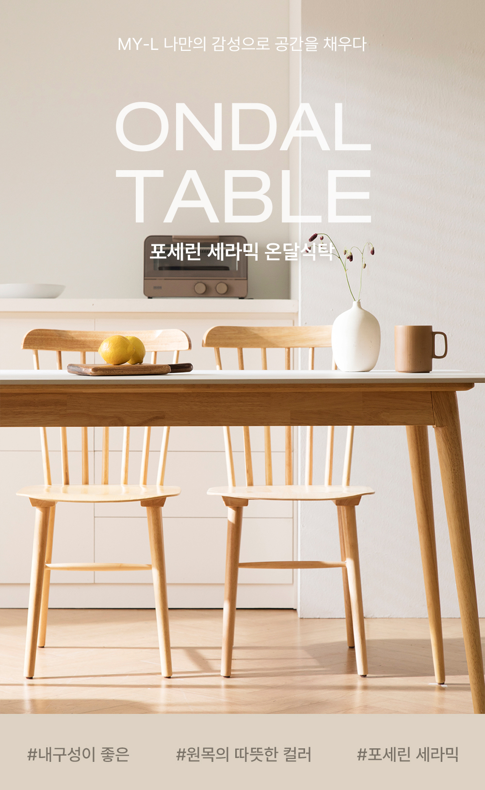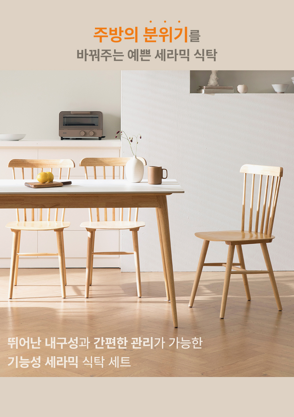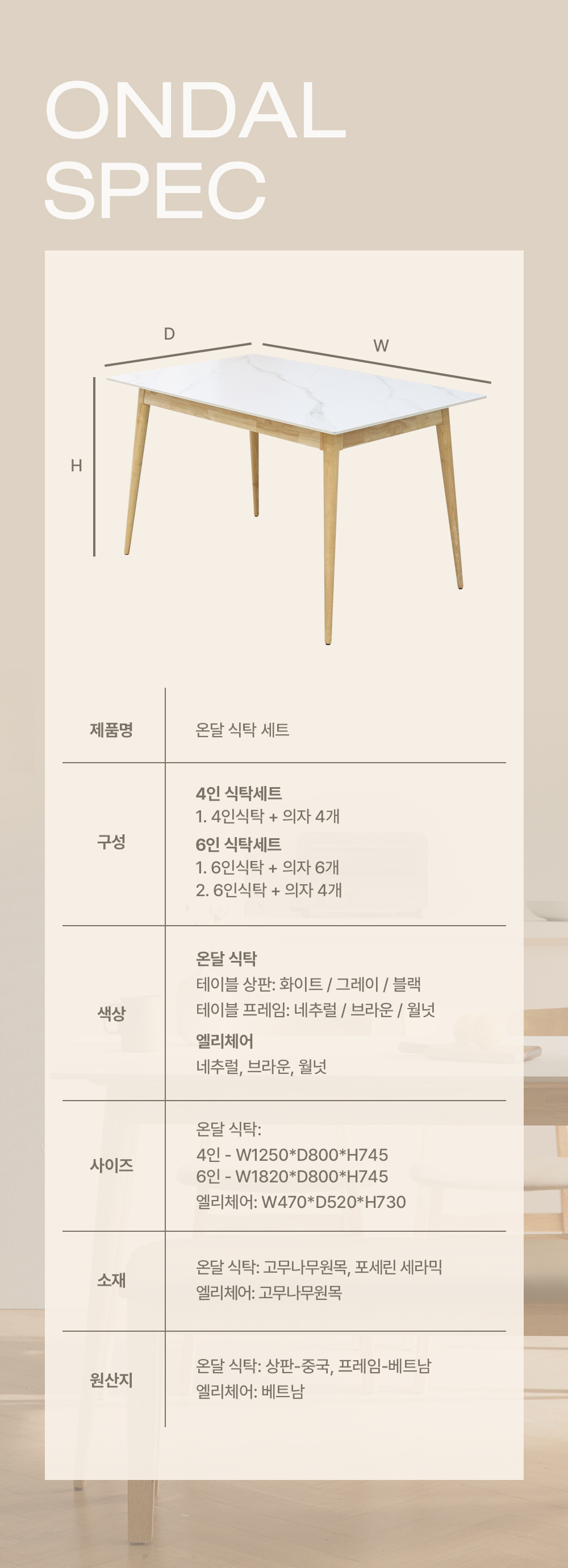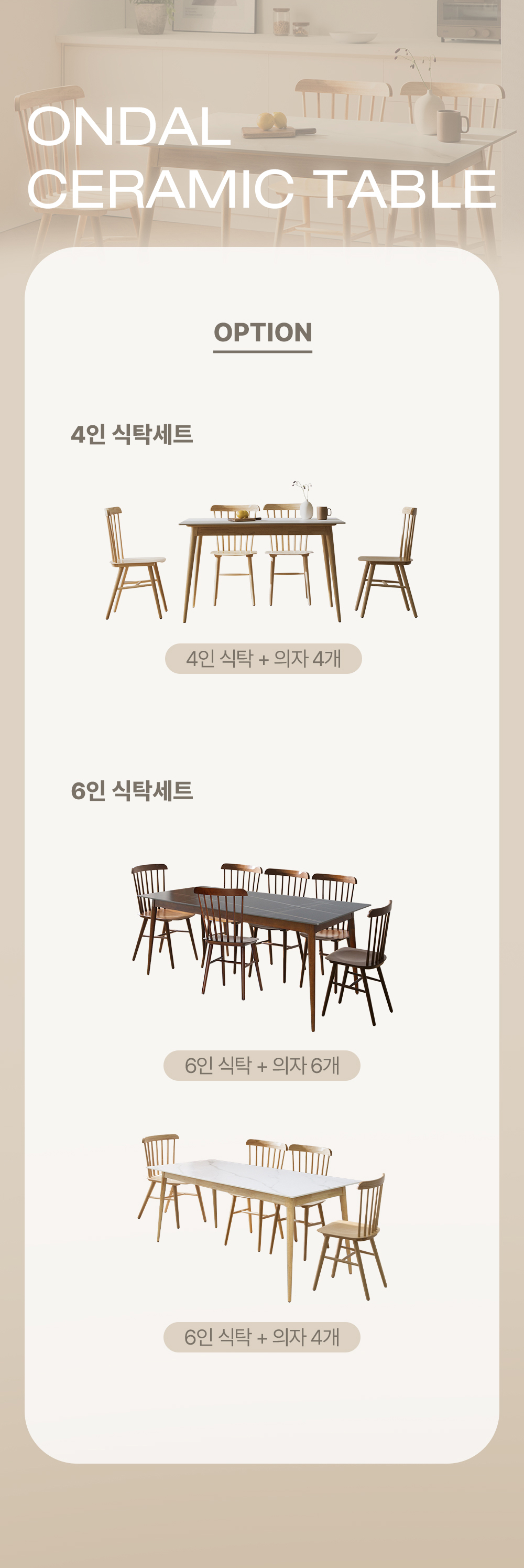 온달 6인 통 포세린 식탁세트 (엘리체어 구성)