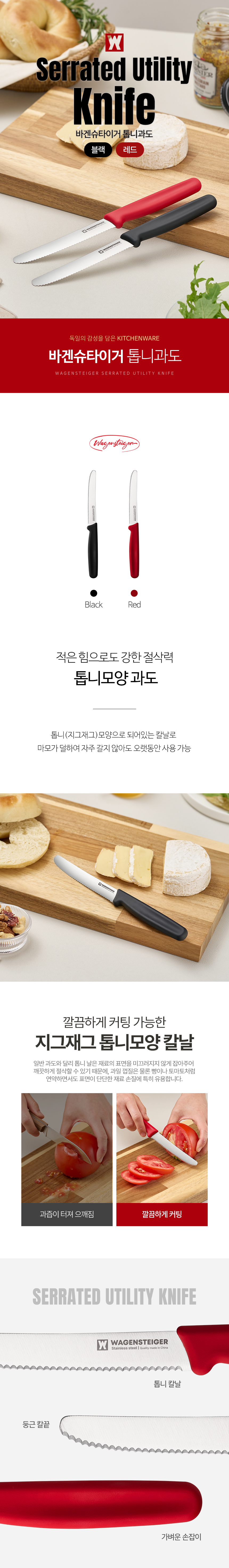 바겐슈타이거 톱니과도 빵칼 과일칼 레드