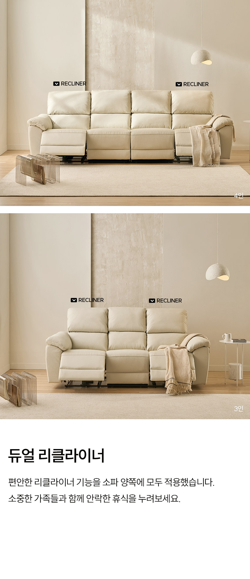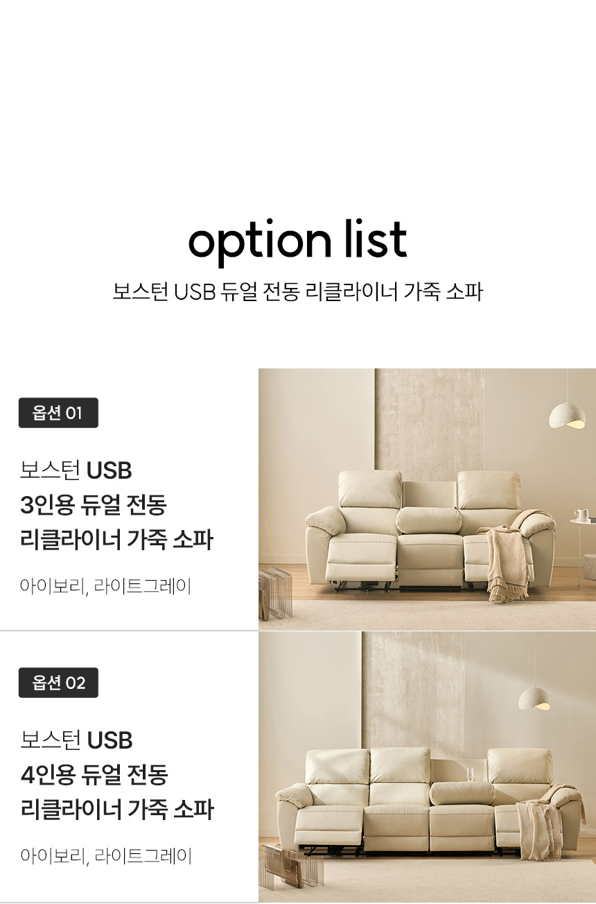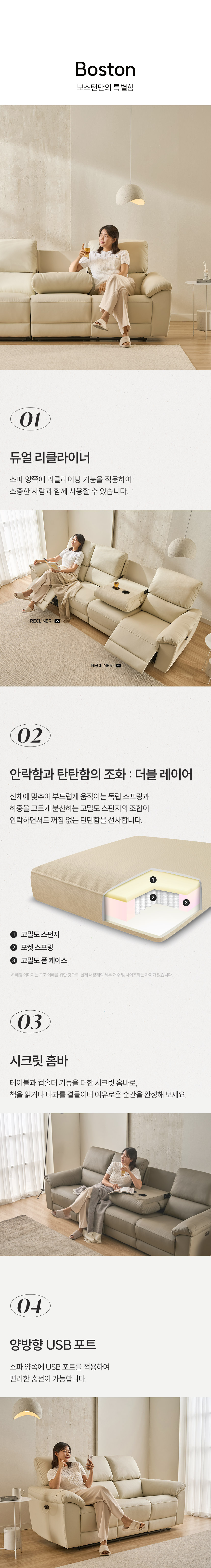 스칸디아 보스턴 USB 듀얼 전동 리클라이너 소파 (3인/4인)