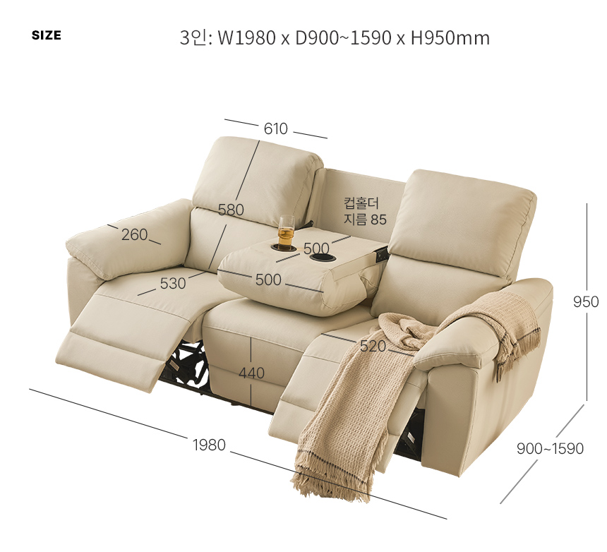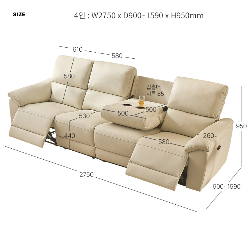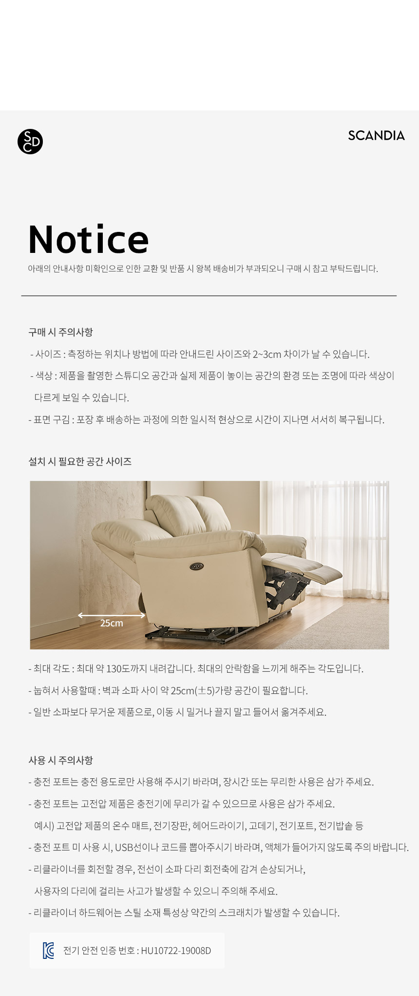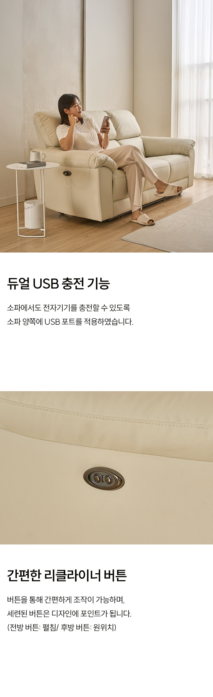 스칸디아 보스턴 USB 듀얼 전동 리클라이너 소파 (3인/4인)