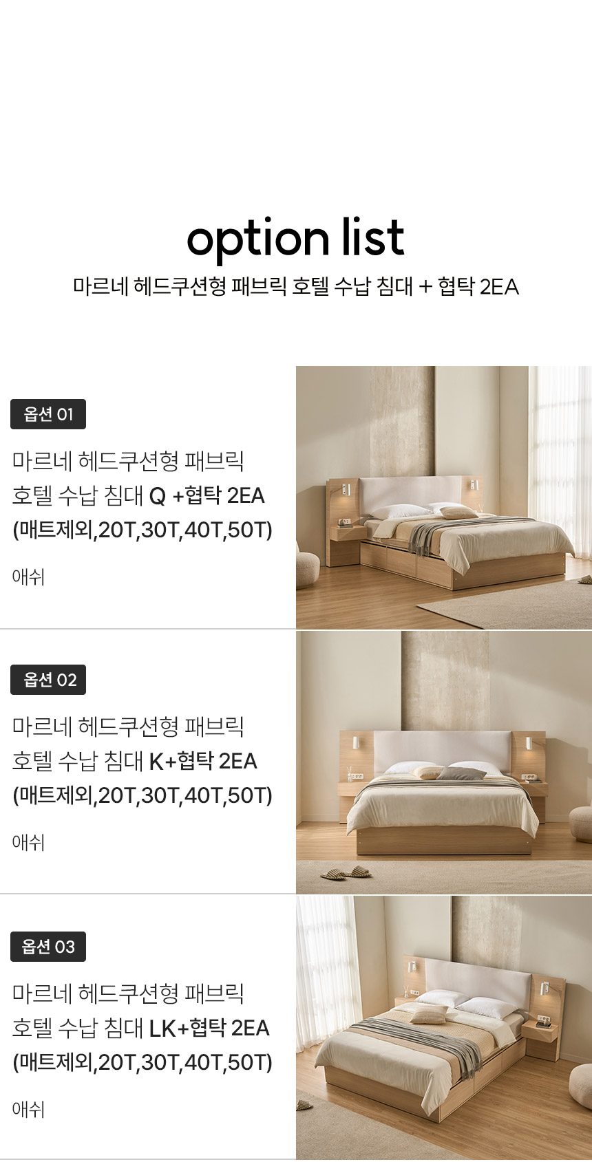 스칸디아 마르네 헤드쿠션형 패브릭 호텔 빅수납 침대+협탁 2EA(Q/K/LK)