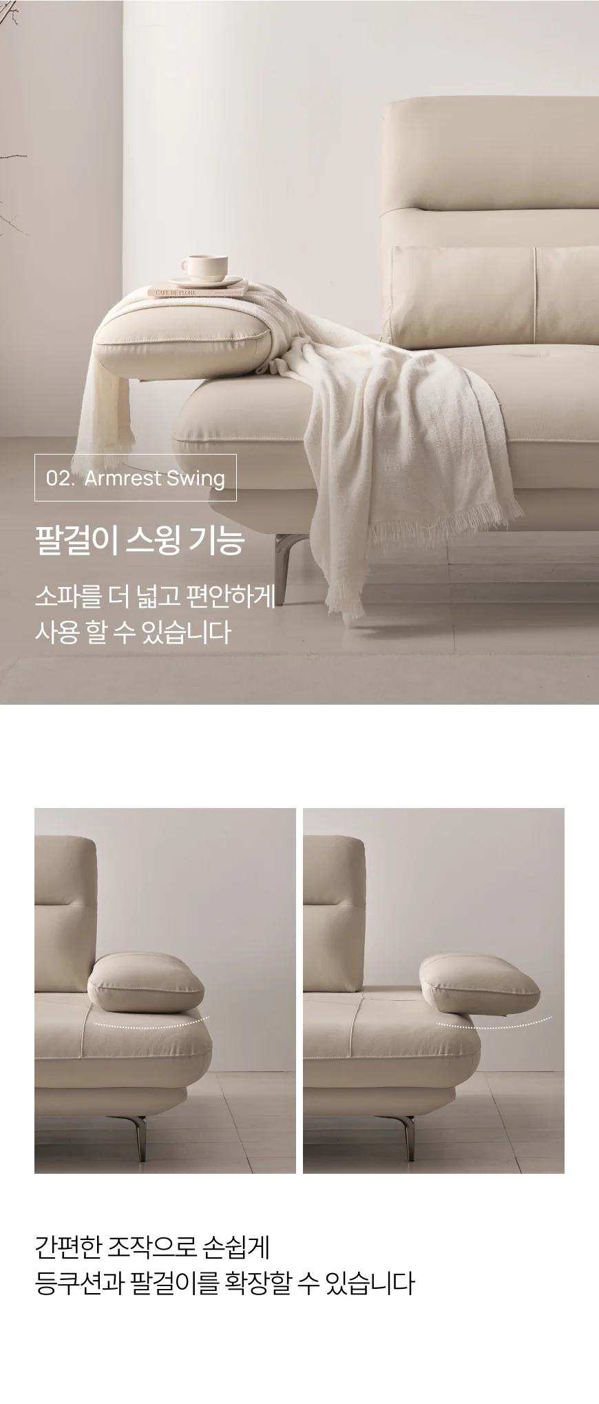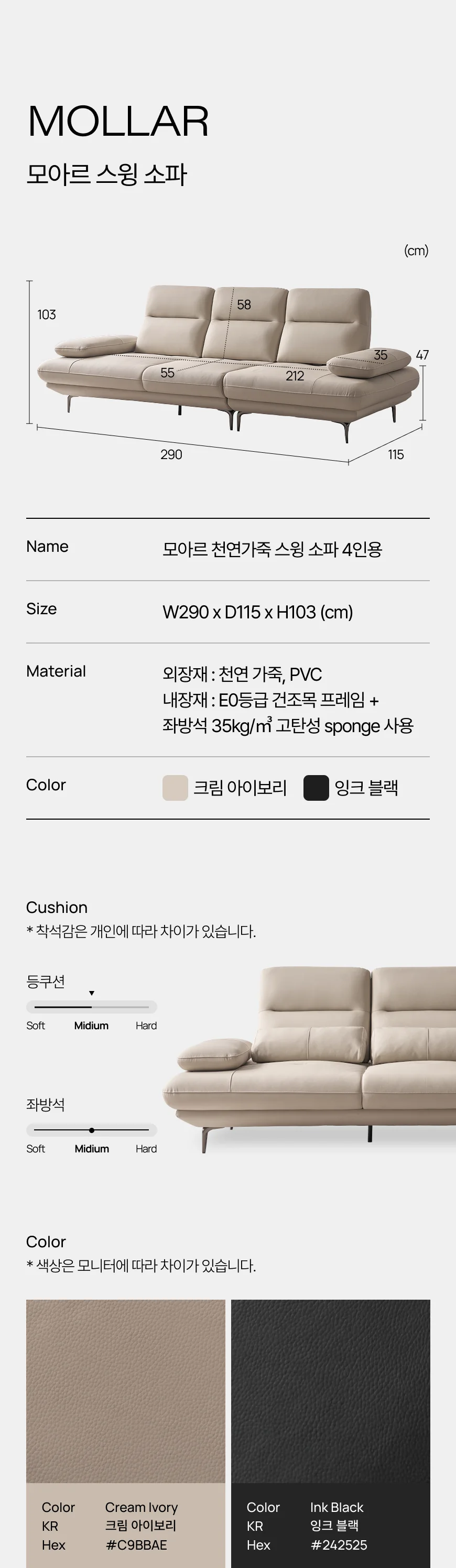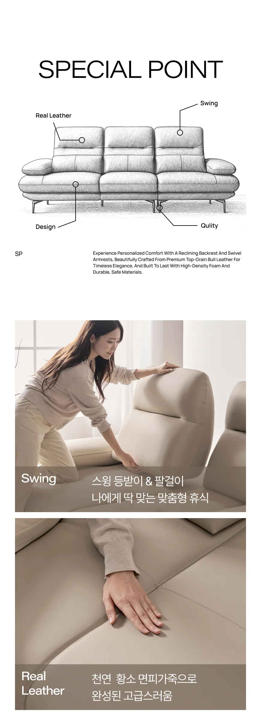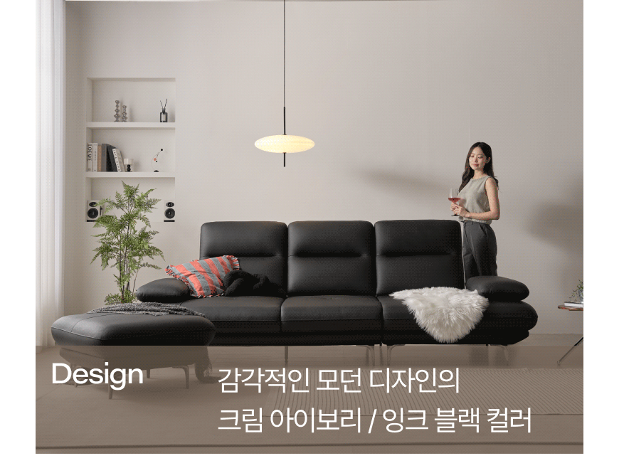 [특가 ~2/9](한샘몰pick) 모아르 천연가죽 스윙 소파 4인용