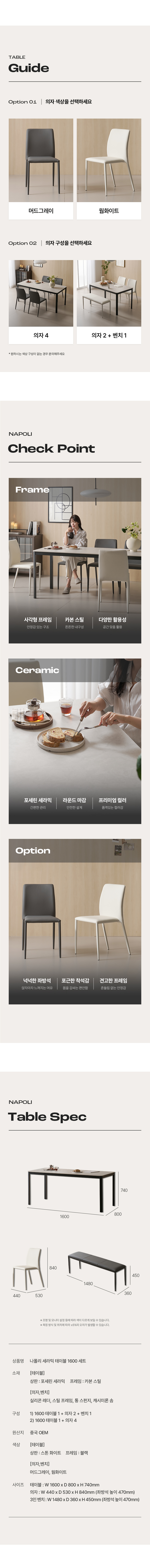 (한샘몰pick) 나폴리 포세린 세라믹 식탁세트 4인용 1600 (벤치형/체어형 선택)