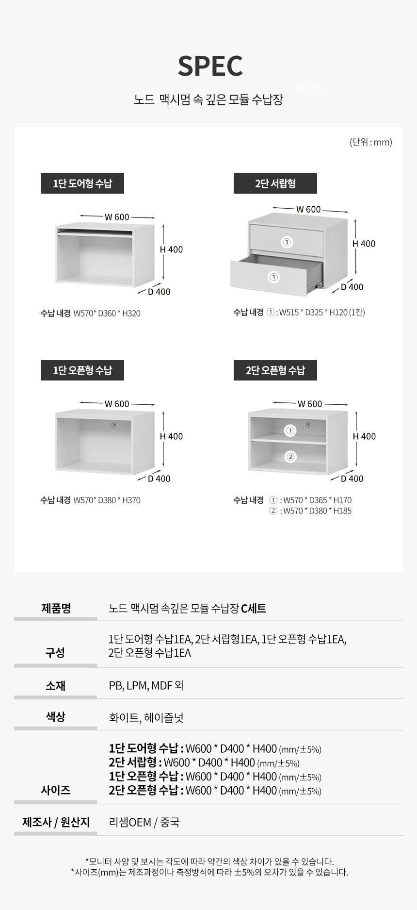 파로마 노드 빅수납 모듈 수납장C 세트 (1단도어형수납 +2단 서랍형 + 1단 오픈형 +2단 오픈형 )