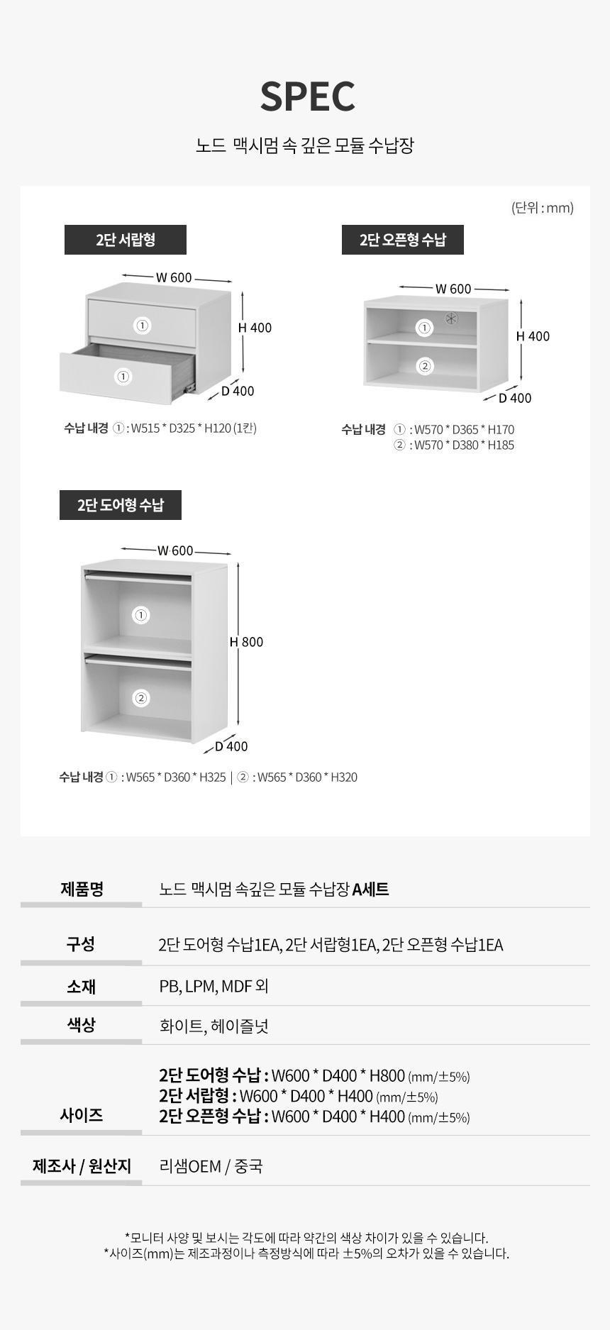 파로마 노드 빅수납 모듈 수납장A 세트 ( 2단 도어형 수납 + 2단 서랍 + 2단 오픈 )
