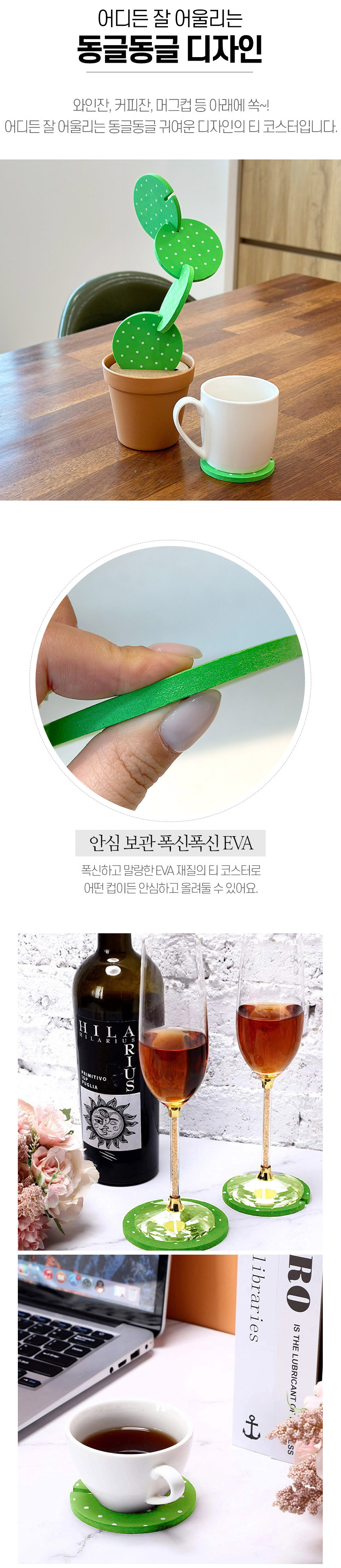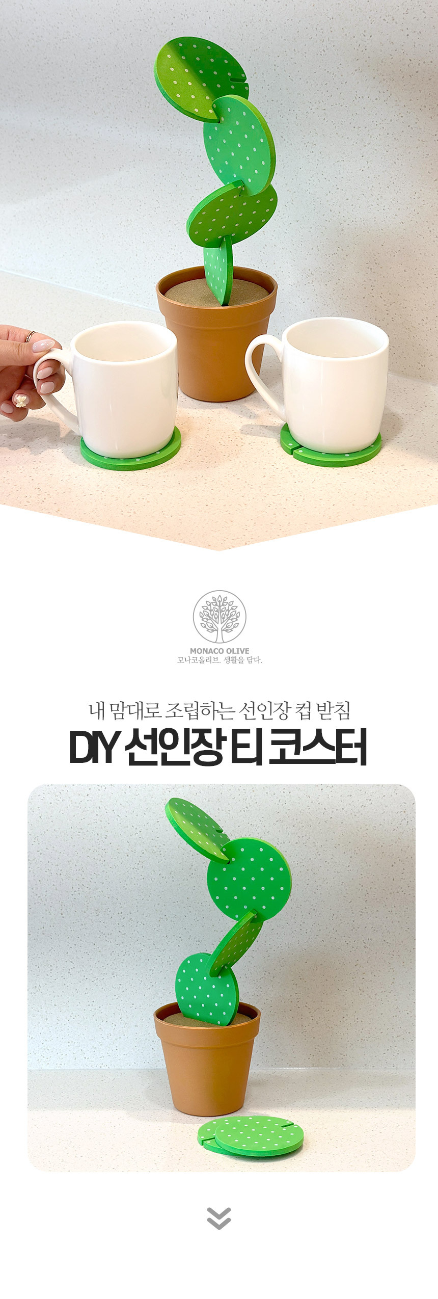 선인장 컵받침 세트 귀여운 조립식 티코스터 인테리어 소품