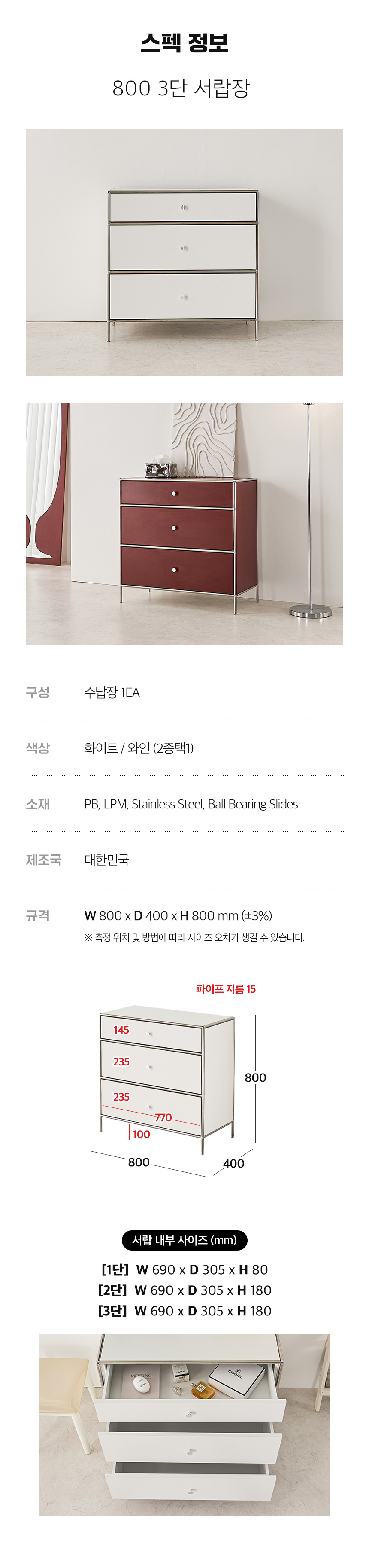 동서가구 벨로 모듈 수납 가구 800 3단 서랍장 DF645656