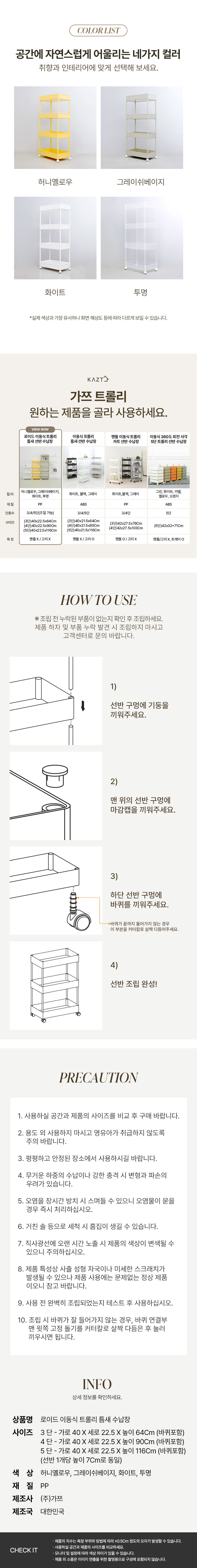 로이드 이동식 선반 트롤리 틈새수납장 4단