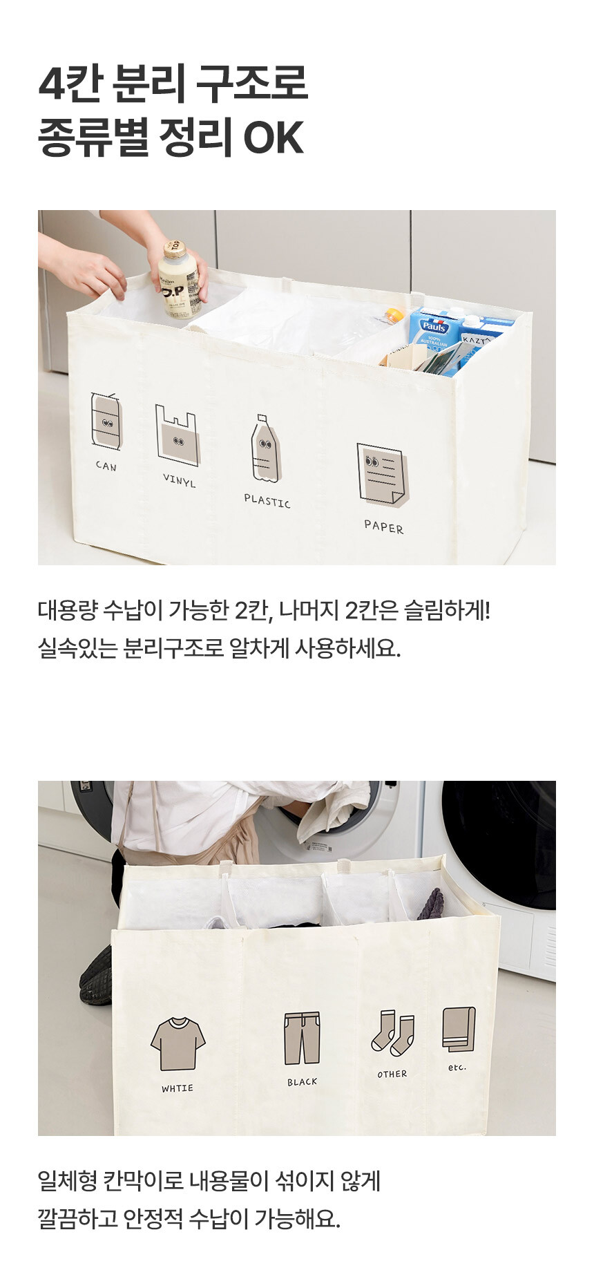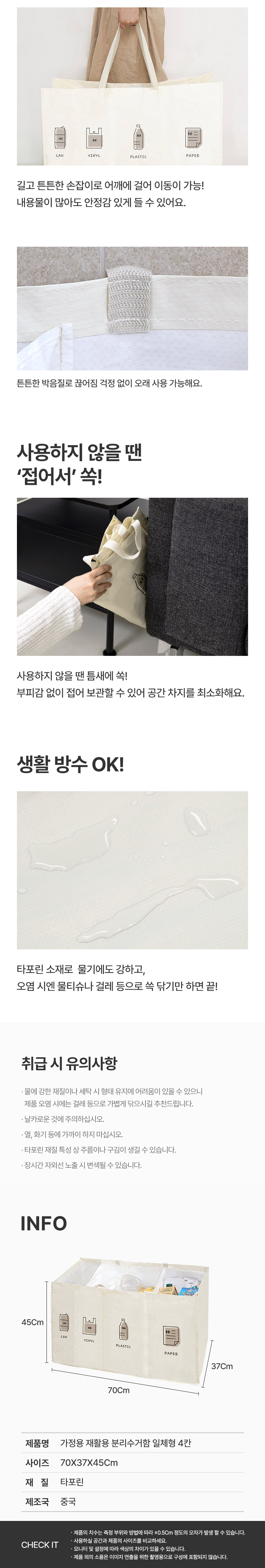 가정용 재활용 분리수거함 일체형 4칸