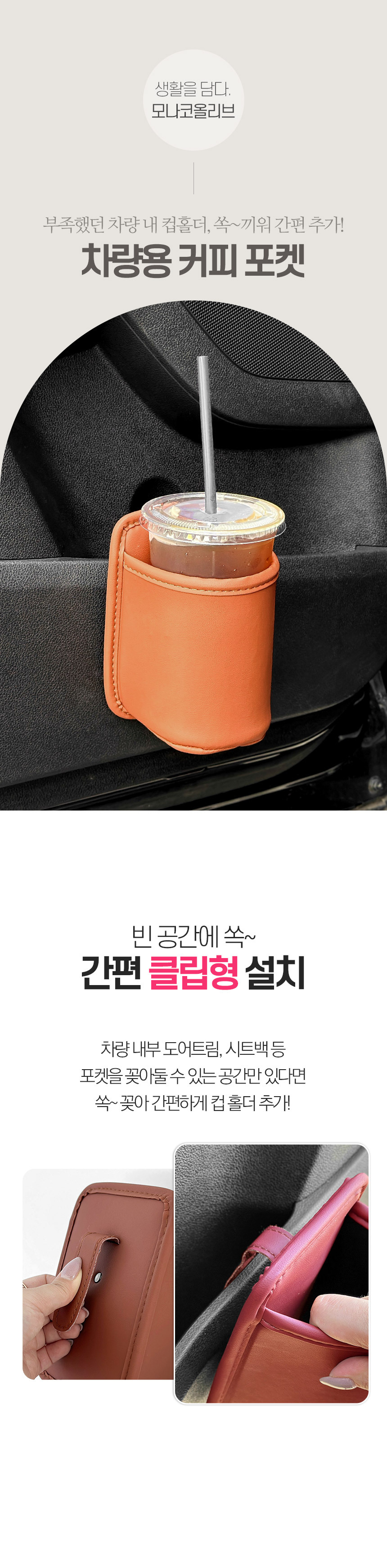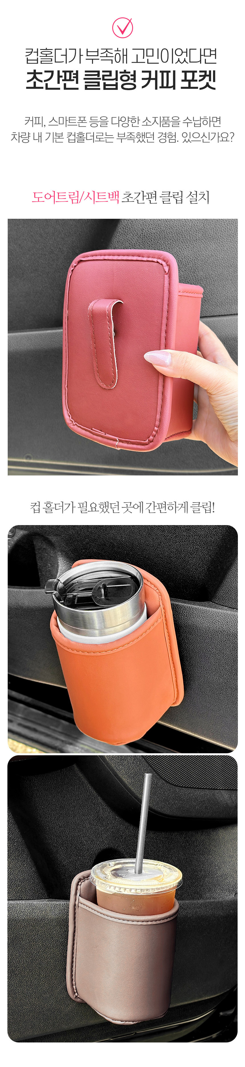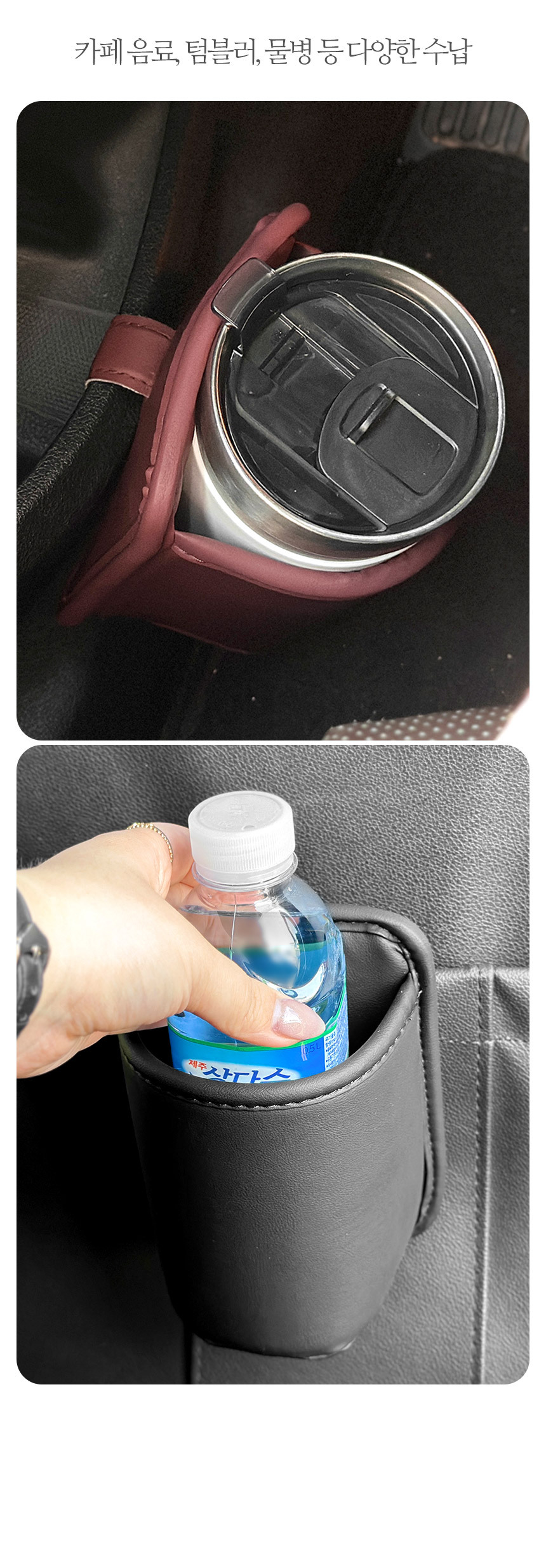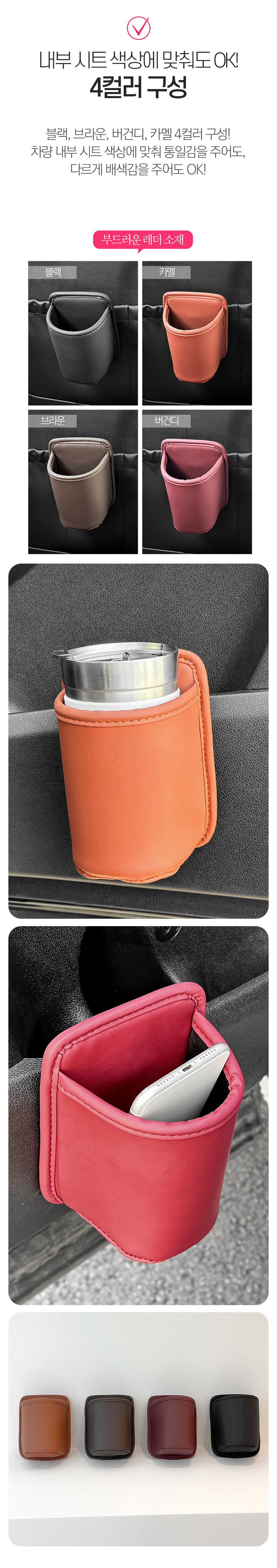 레자핏 커피포켓 차량용 도어 수납 인조가죽 음료수 드링크홀더 아이스아메리카노 컵 보관