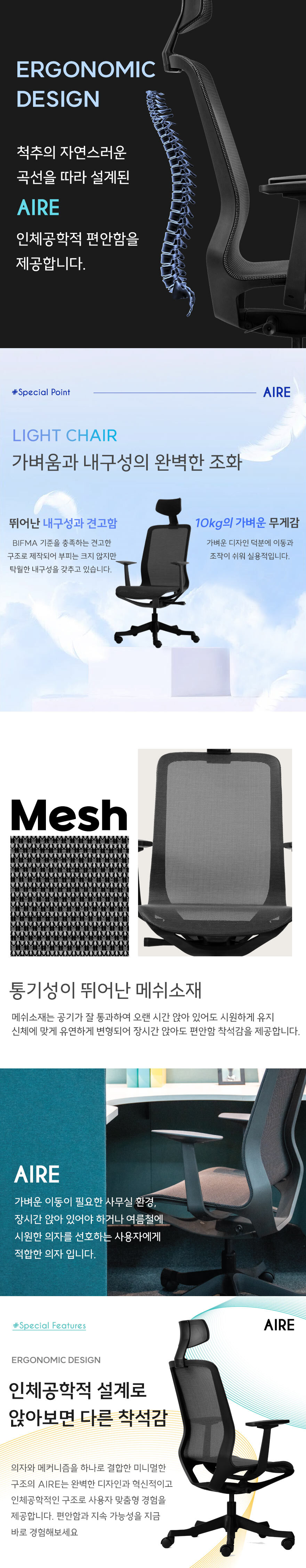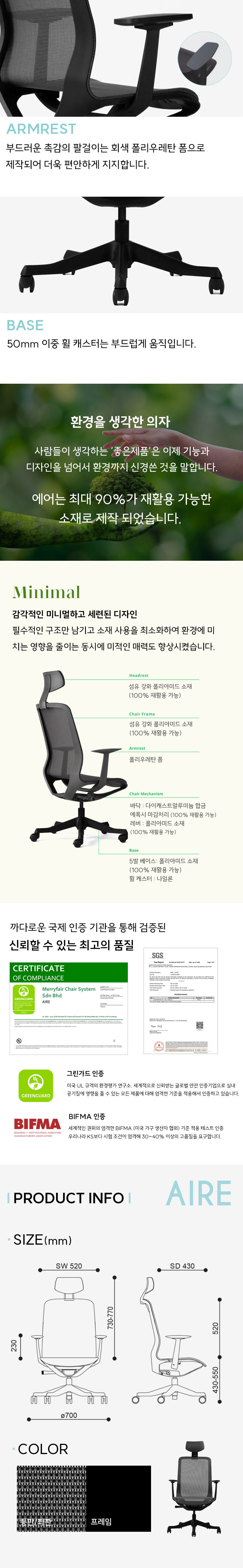 플랜티엠 메리페어 Aire 홈오피스 체어 사무실 학생 컴퓨터 책상 의자 인체공학적 허리편한